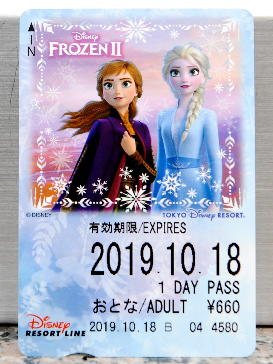 ディズニーリゾートラインでは『アナと雪の女王2』のアナ、エルサがデザインされたオシャレなフリーきっぷと、