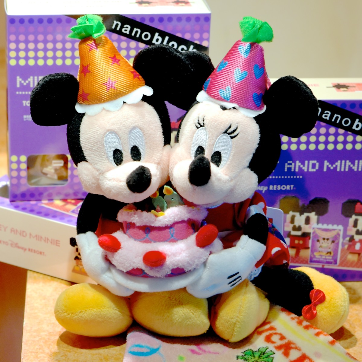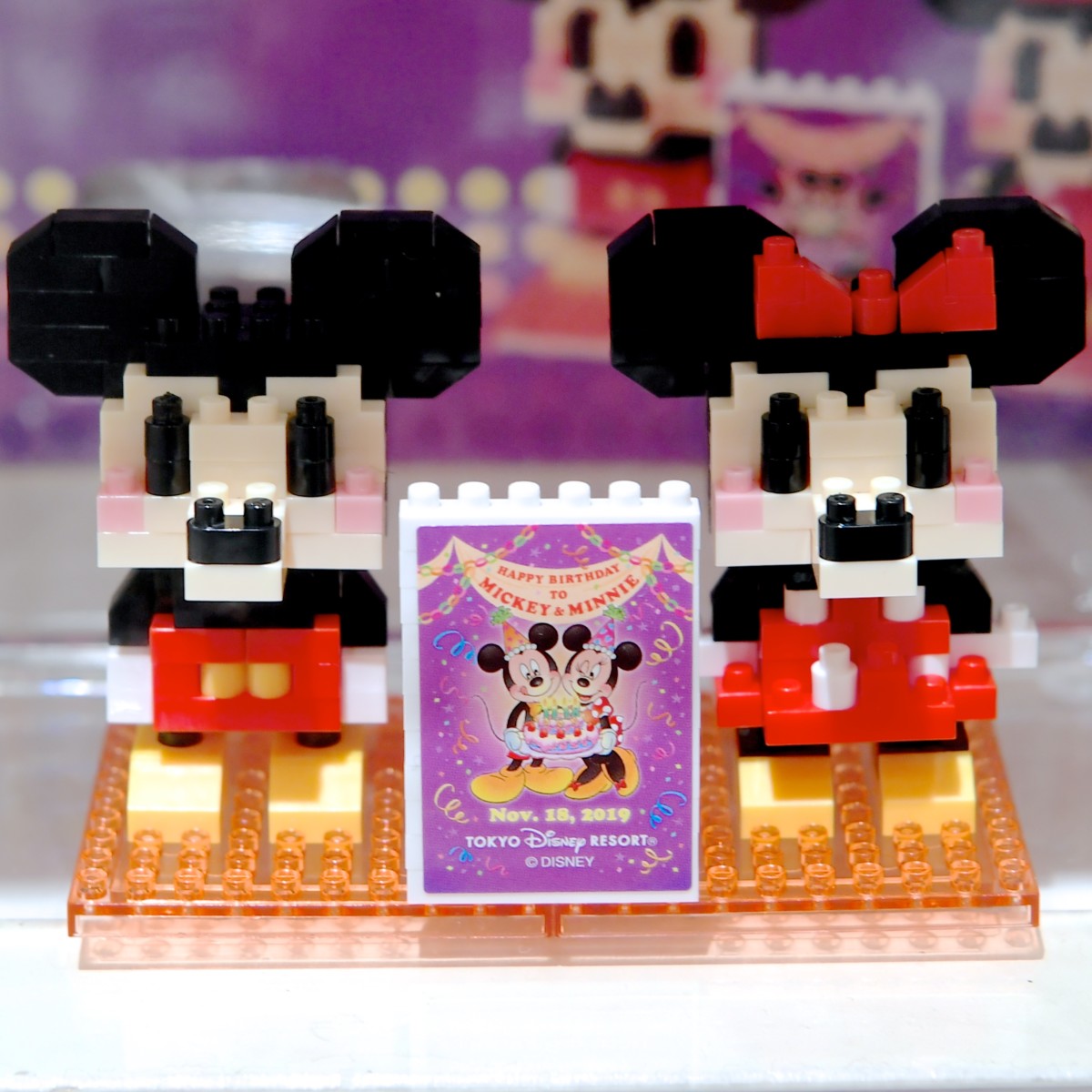 ミッキーマウスとミニーマウスのペアデザインナノブロック。