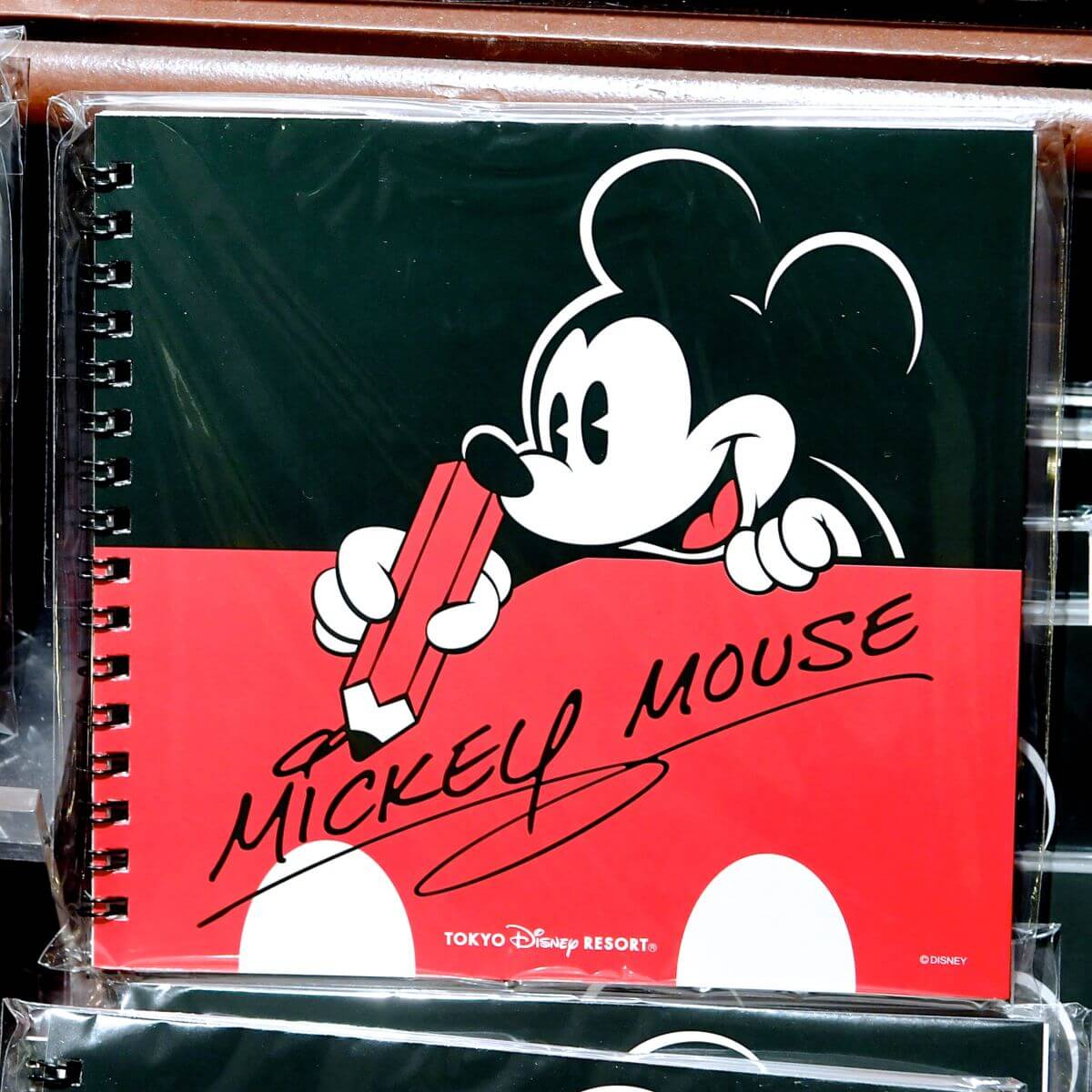 表面の赤と黒のミッキーカラーはもちろん、定番の深緑と黄色の裏表紙もポイントです☆