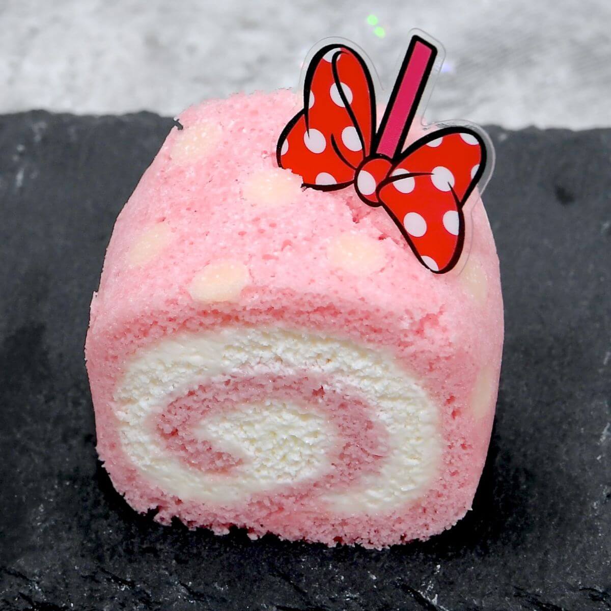 キャンディをイメージした<ミニーマウス>のプチケーキは「ミルククリームのロールケーキ」