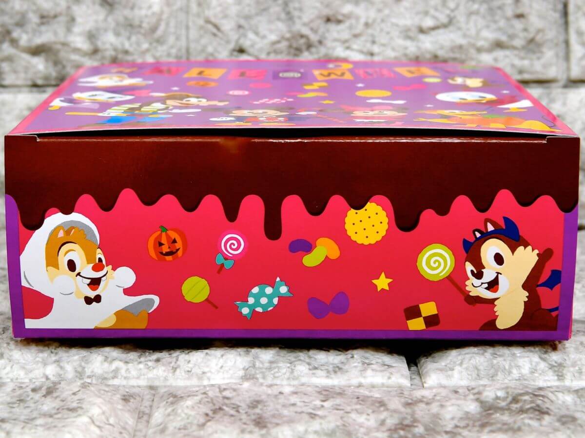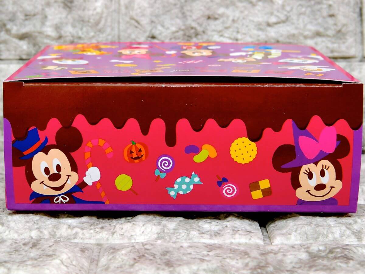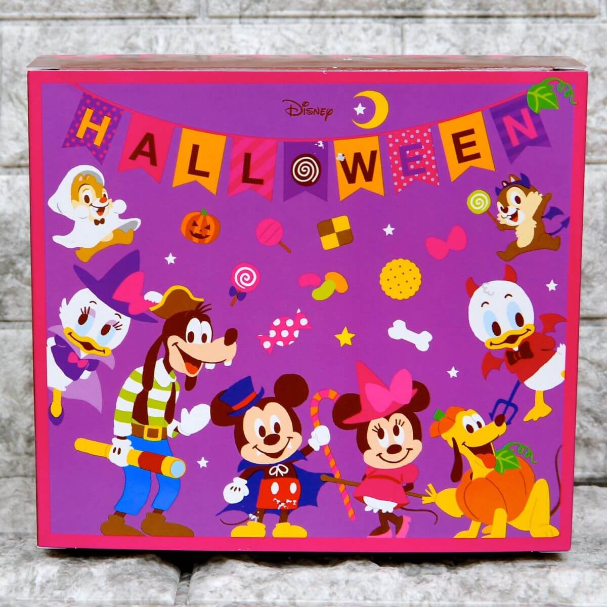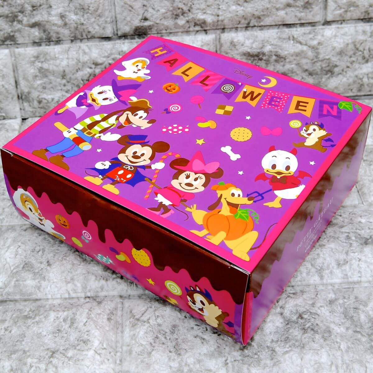 ハロウィンの仮装を楽しむ「ミッキー&フレンズ」がデザインされたボックス入り。