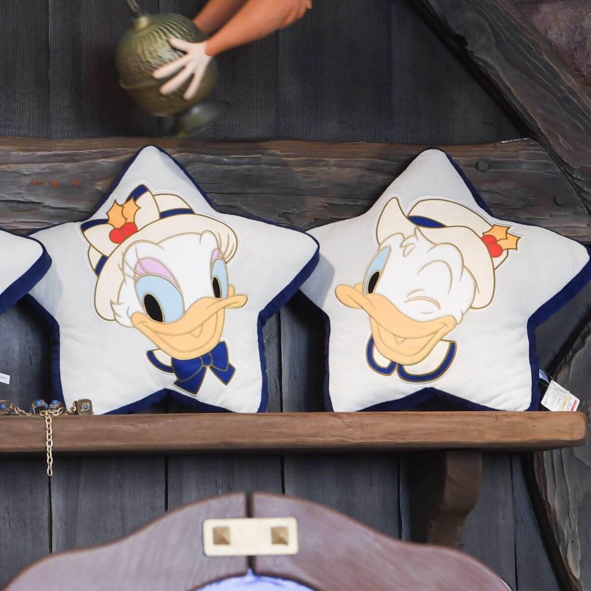 景品は、楽しそうにベルをならす姿がかわいいミッキーたちのピンとドナルド、デイジーの星型クッション。