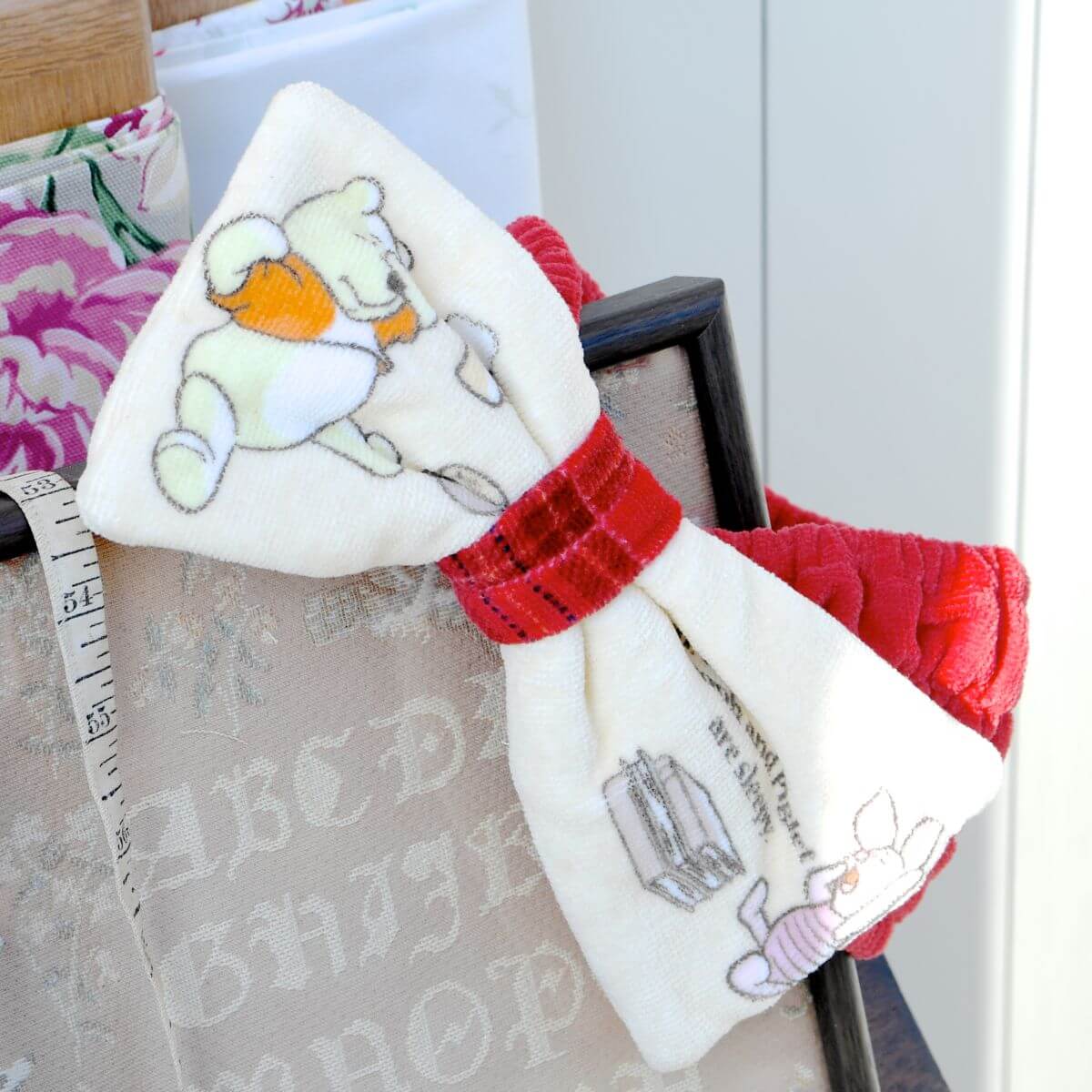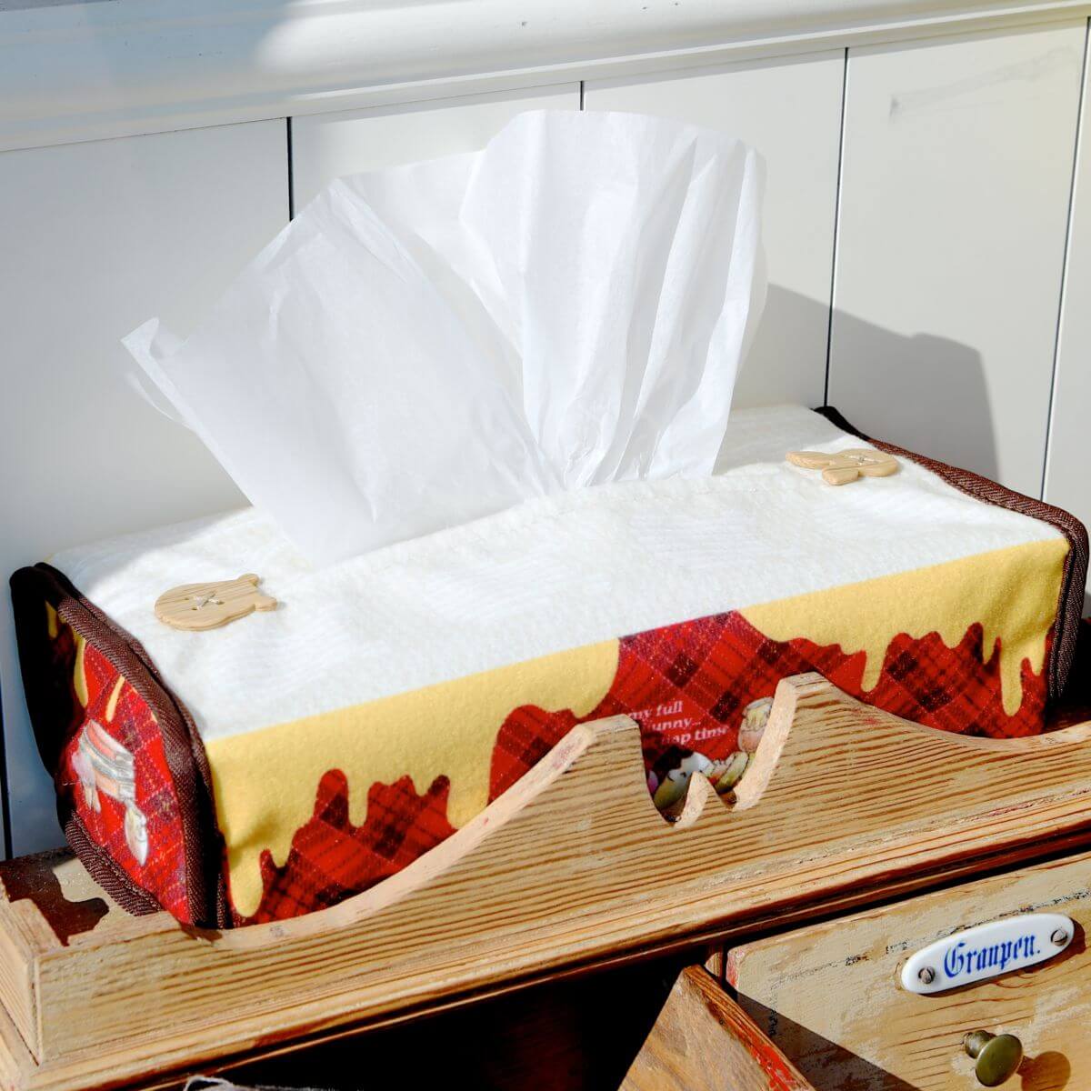 ティッシュボックスカバーには「プーさん」と「ピグレット」のお顔の形のボタン付き。