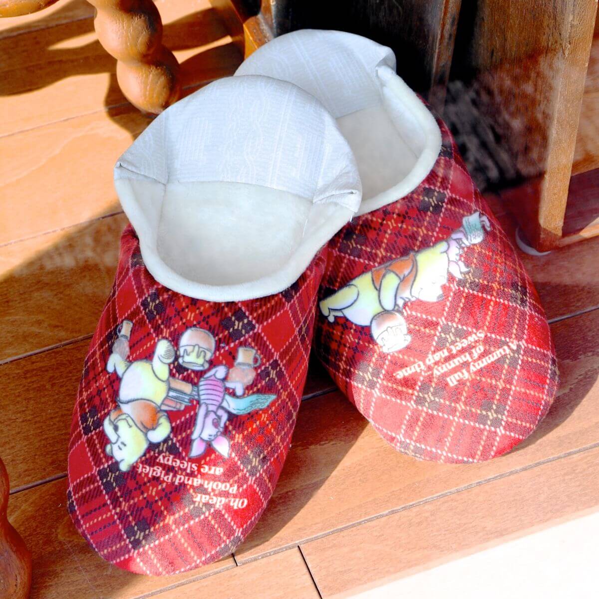 赤を基調にしたチェック柄と「くまのプーさん」と「ピグレット」のかわいいストーリーが魅力の雑貨グッズ。