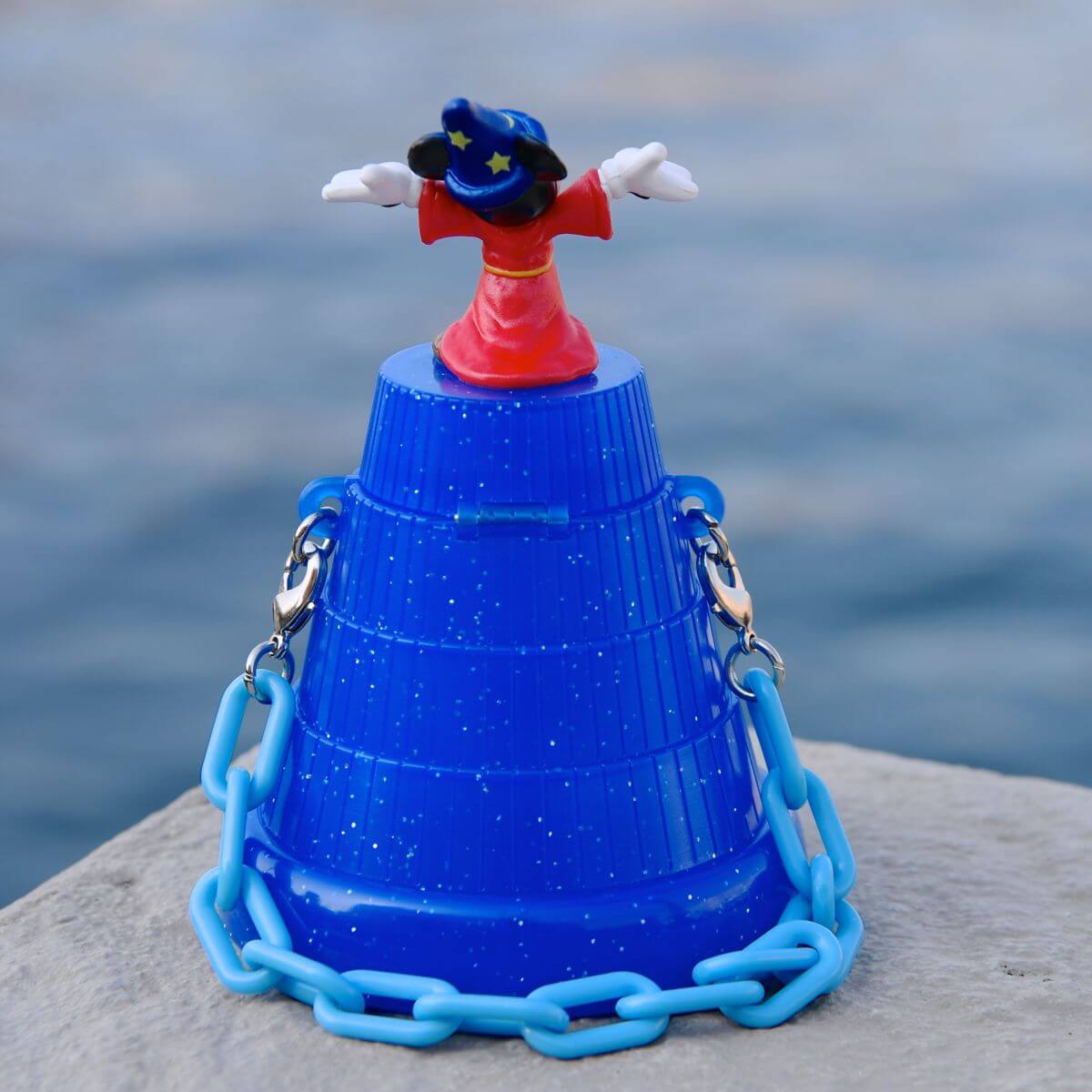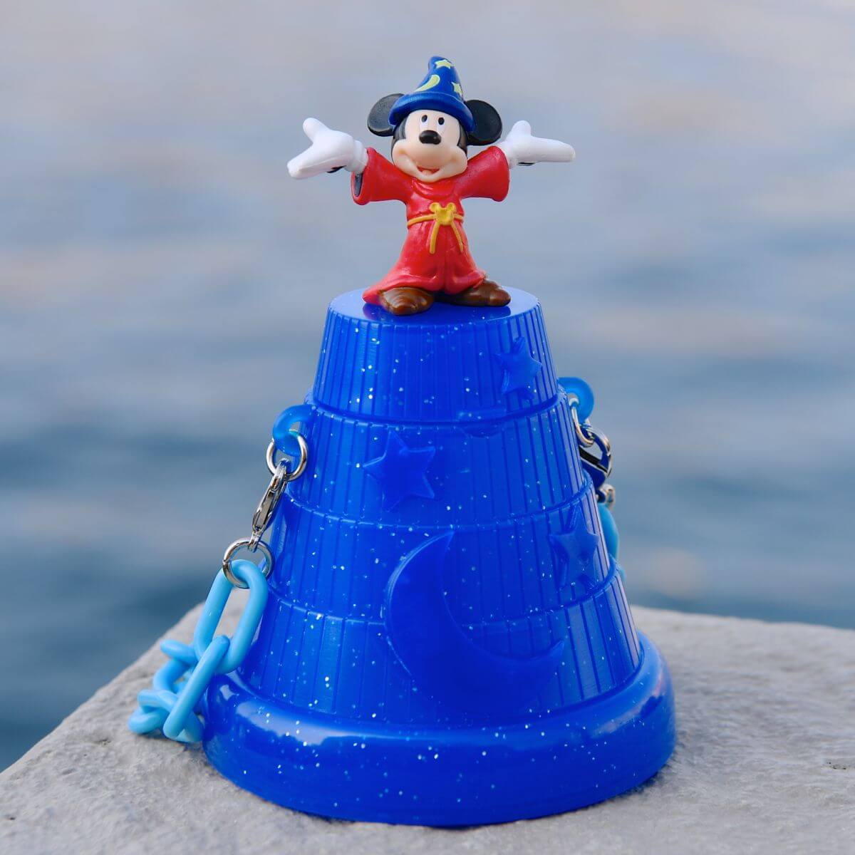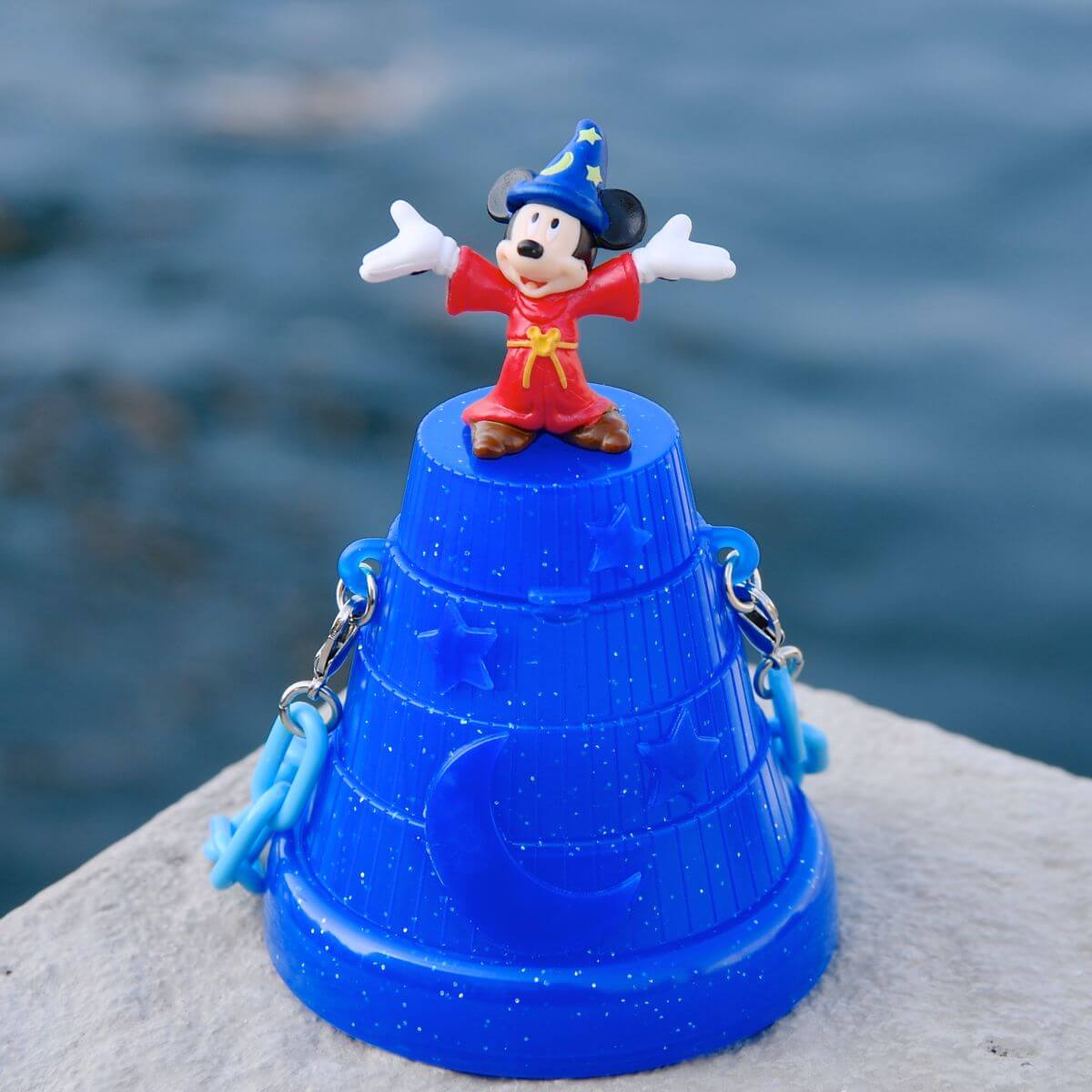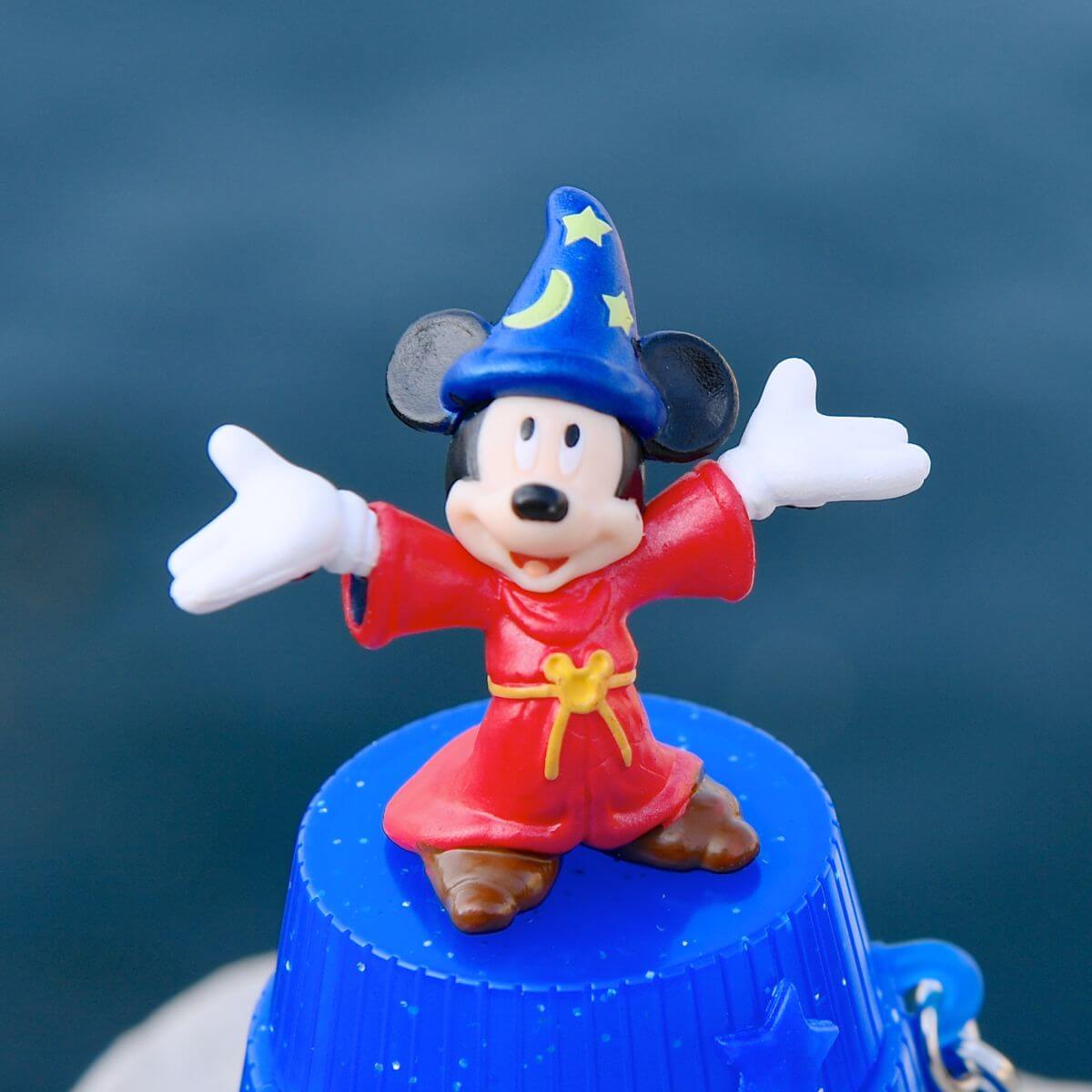 両手を広げたかわいい『魔法使いの弟子』コスチュームのミッキーマウスのフィギュアが付いています☆