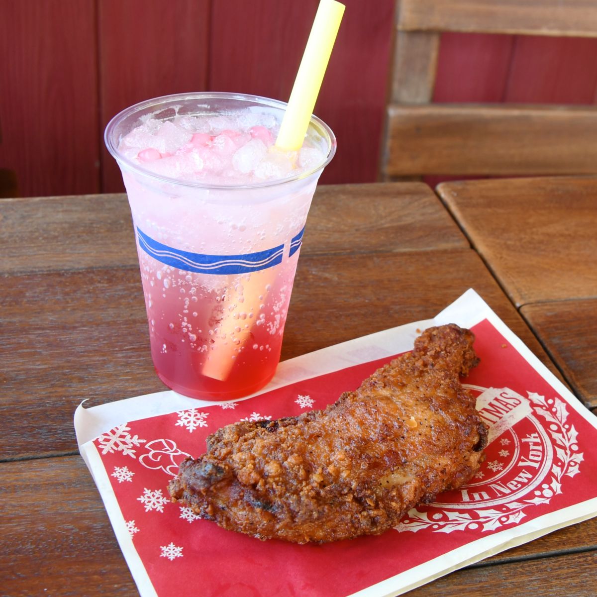 フライドチキン&スパークリングカクテル(ソルティライチ&タピオカ)!ドックサイドダイナー“ディズニー・クリスマス2019”テイスト・オブ・クリスマススメニューの紹介でした。