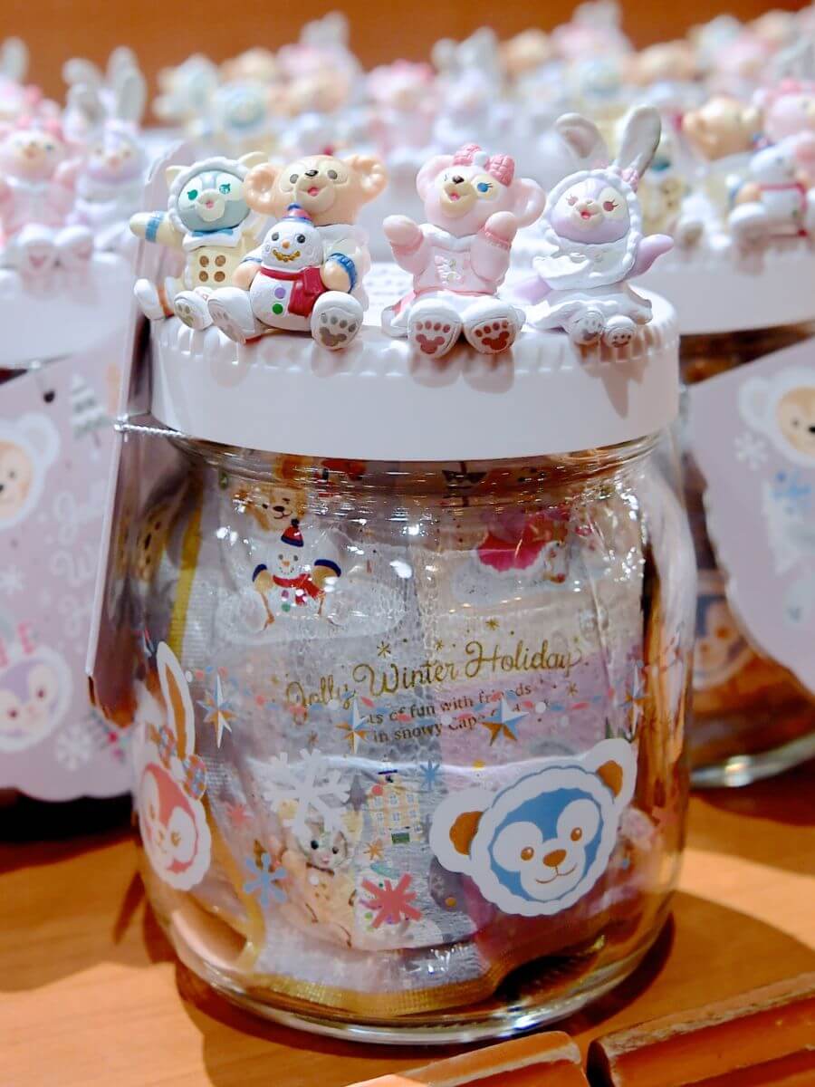 フタの上にかわいいダッフィー&フレンズのフィギュアの乗った瓶入りココア。