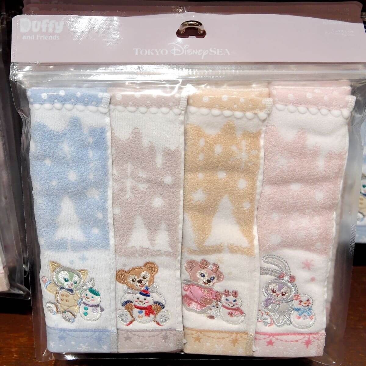 ケープコッドの町並みがデザインされた「ダッフィー&フレンズ」のミニタオル4枚セット。