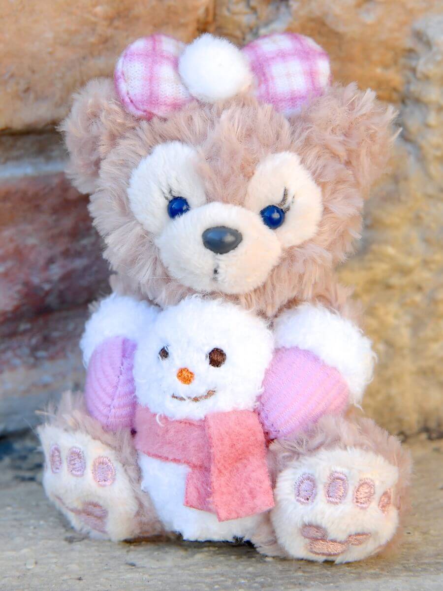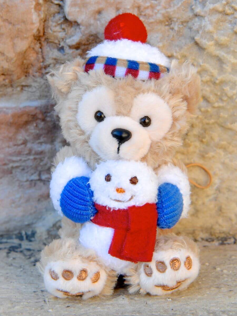 「ダッフィー」のぬいぐるみストラップは赤いマフラーをした雪だるまを抱えています☆