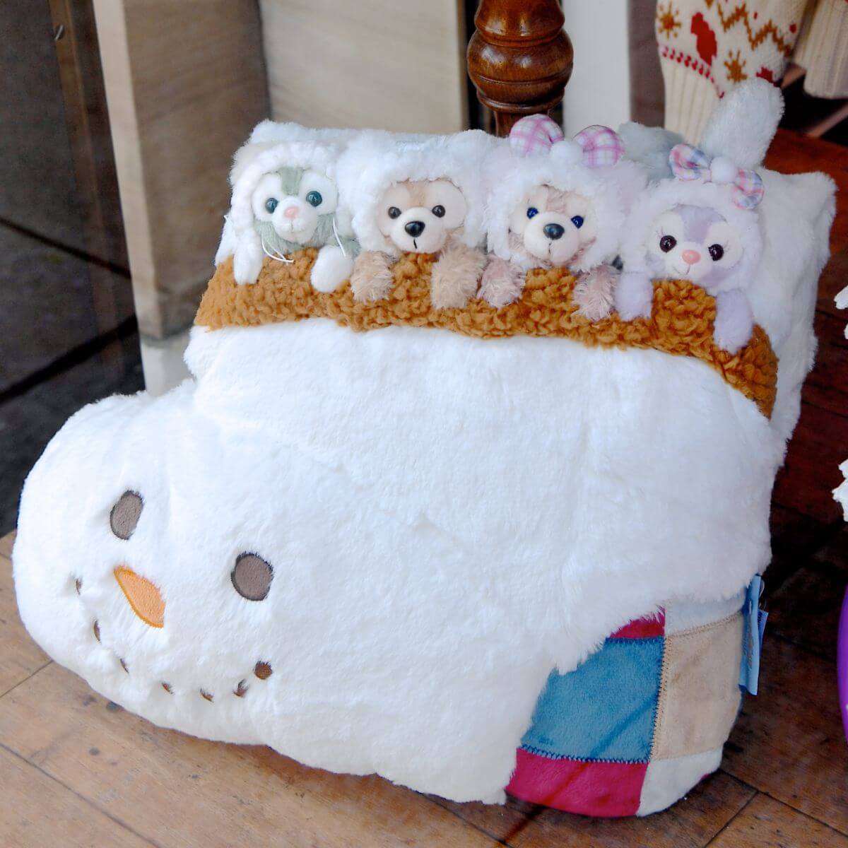雪だるまのお顔のついたブーツの中に、「ダッフィー」「シェリーメイ」「ジェラトーニ」「ステラ・ルー」が入っています☆