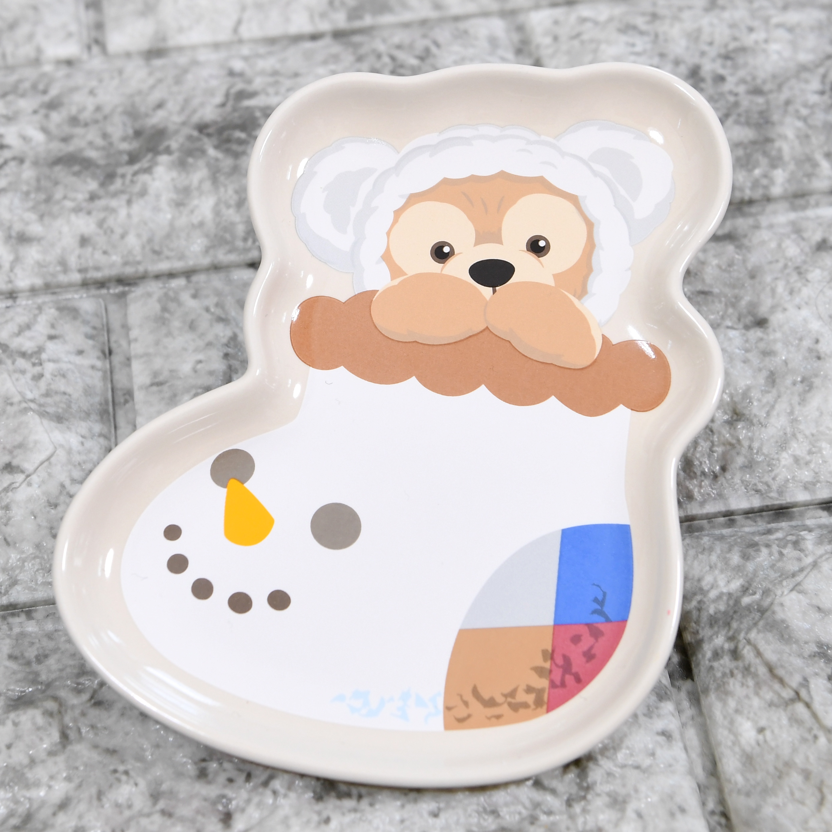 ふわもこな雪だるまになった「ダッフィー」が描かれたスーベニアプレートがセットになっています☆