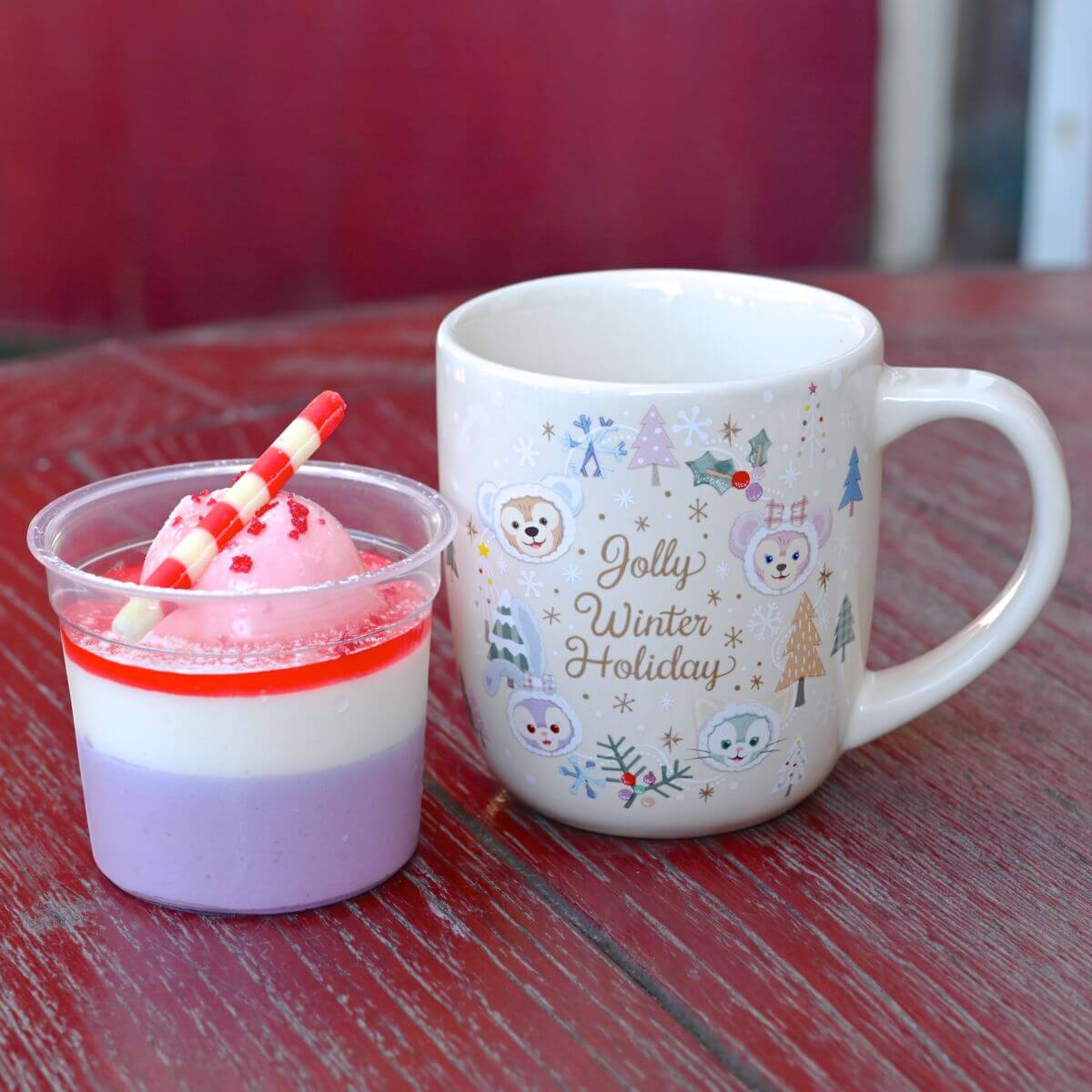 ケープコッドの冬を満喫するダッフィーたちがデザインされたかわいいスーベニア付きデザートメニュー。