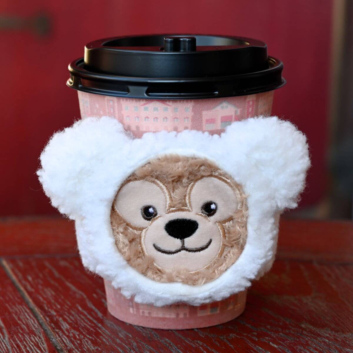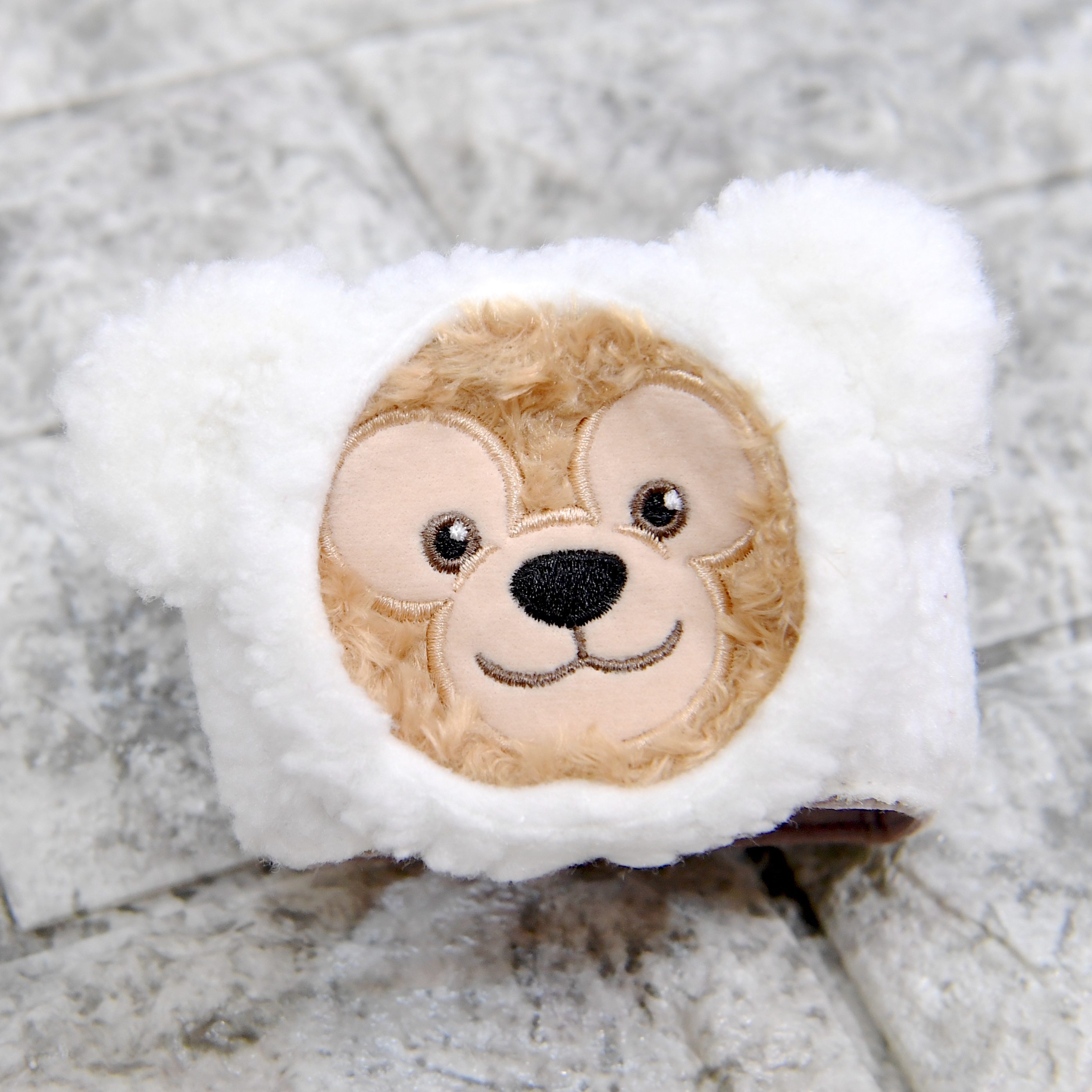 スーベニアスリーブは、モコモコのフードコスチュームがかわいい「ダッフィー」デザイン。