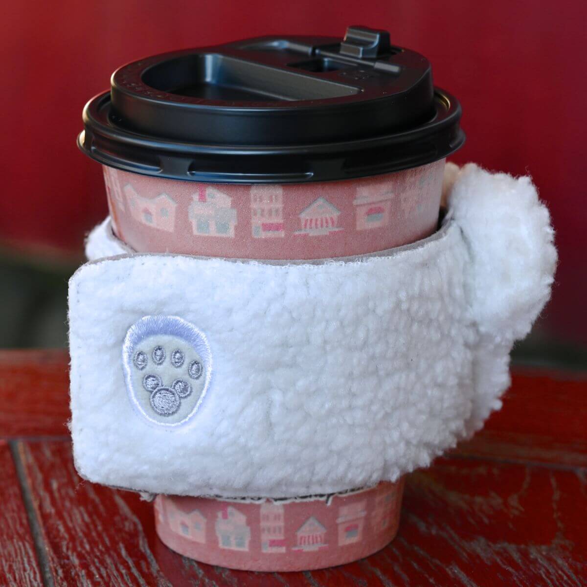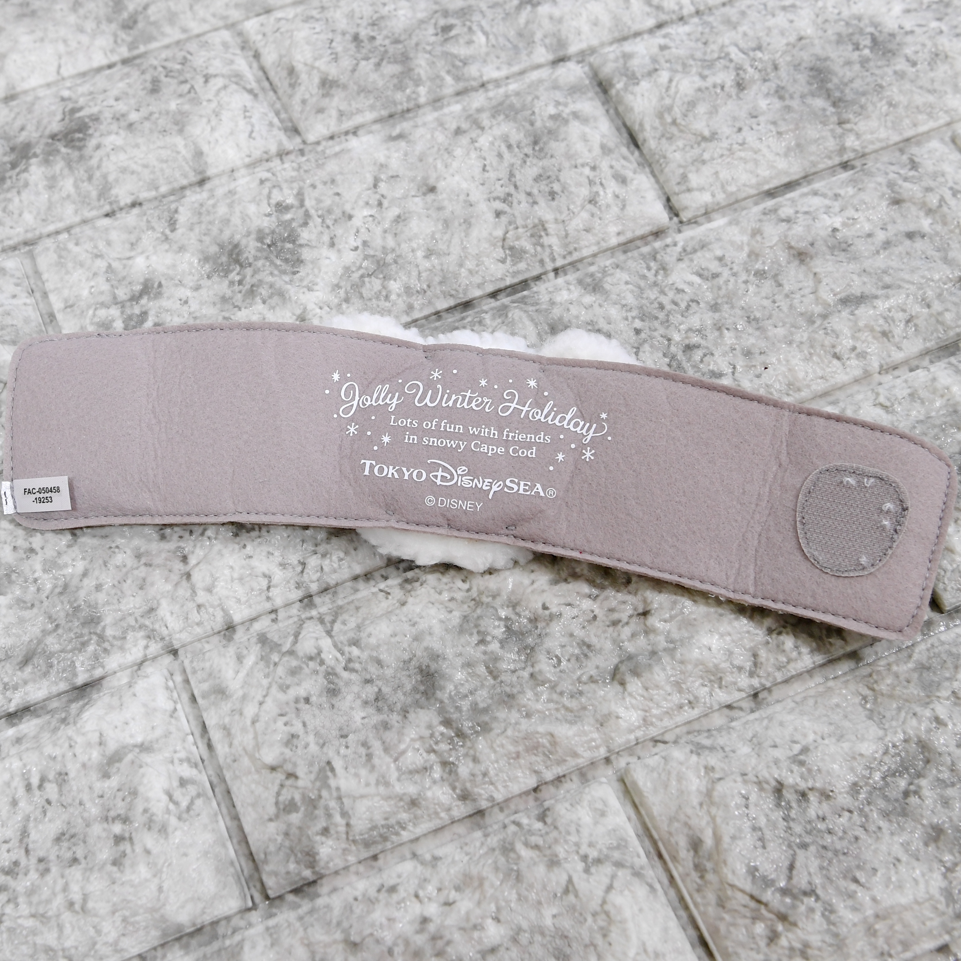 ケープコッドの冬を満喫するダッフィーのお顔型スーベニアスリーブ。