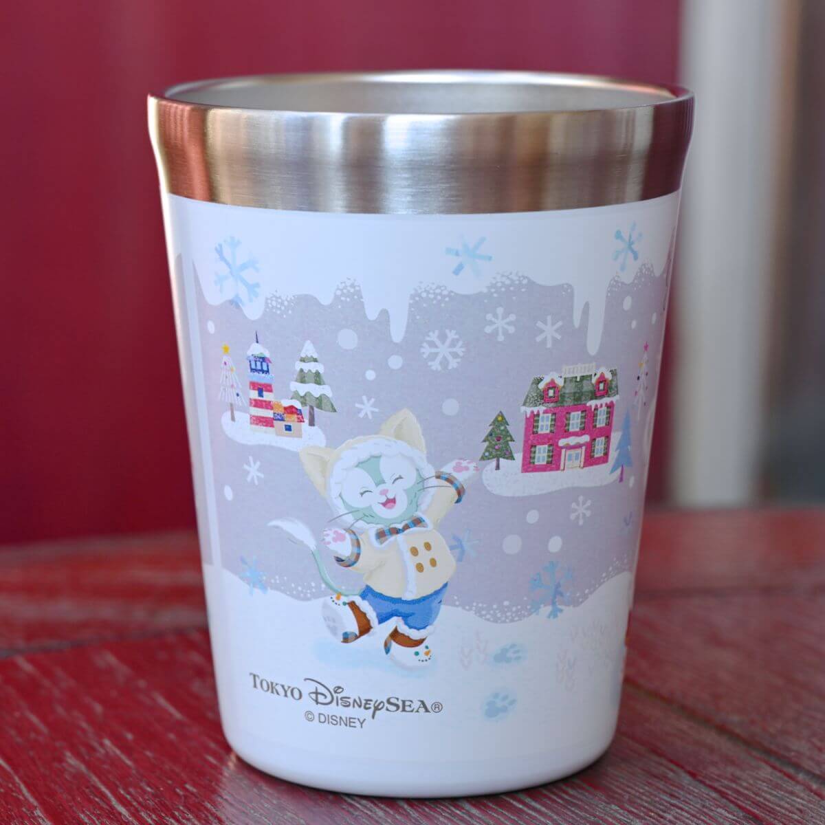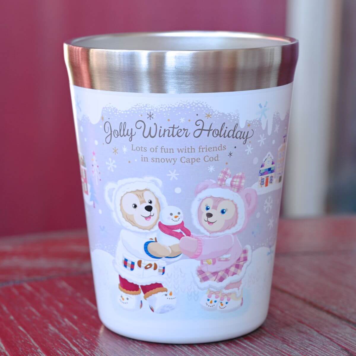 スーベニアタンブラーは、ケープコッドで雪だるま作りを楽しむ「ダッフィー&フレンズ」がデザインされています。