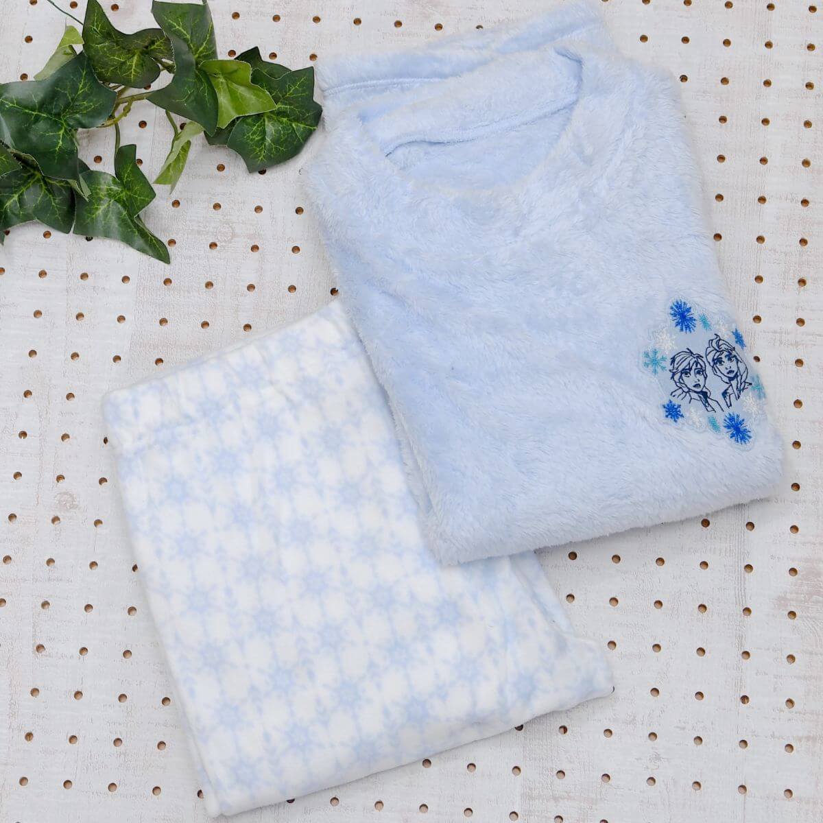 成長したアナとエルサがデザインされた水色のフリースセット。