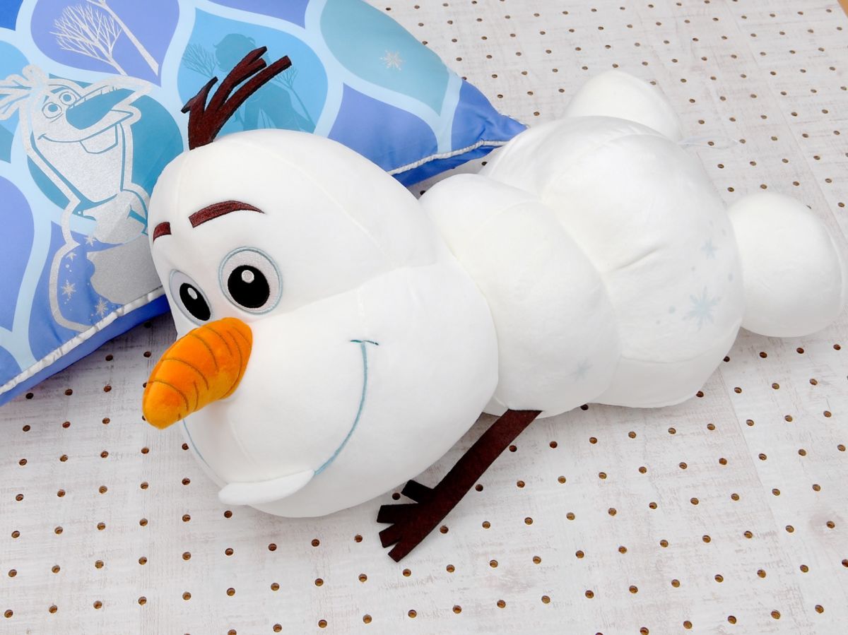 寝そべり姿がかわいい「オラフ」の大きな寝そべりぬいぐるみ。