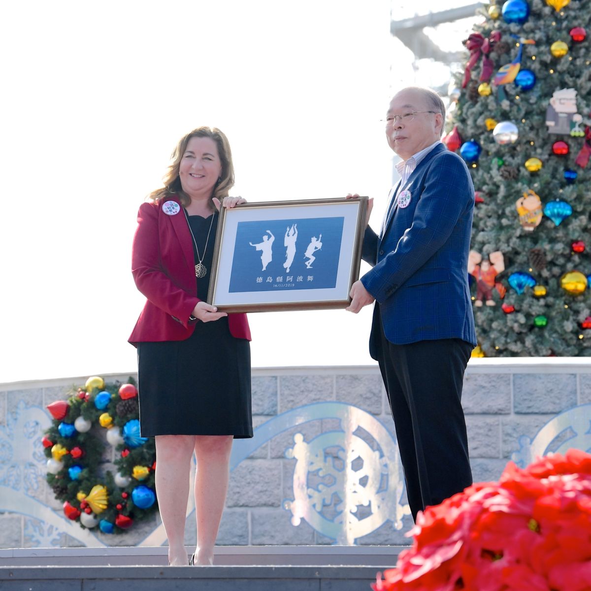 セレモニーにはミッキーマウスとミニーマウス。