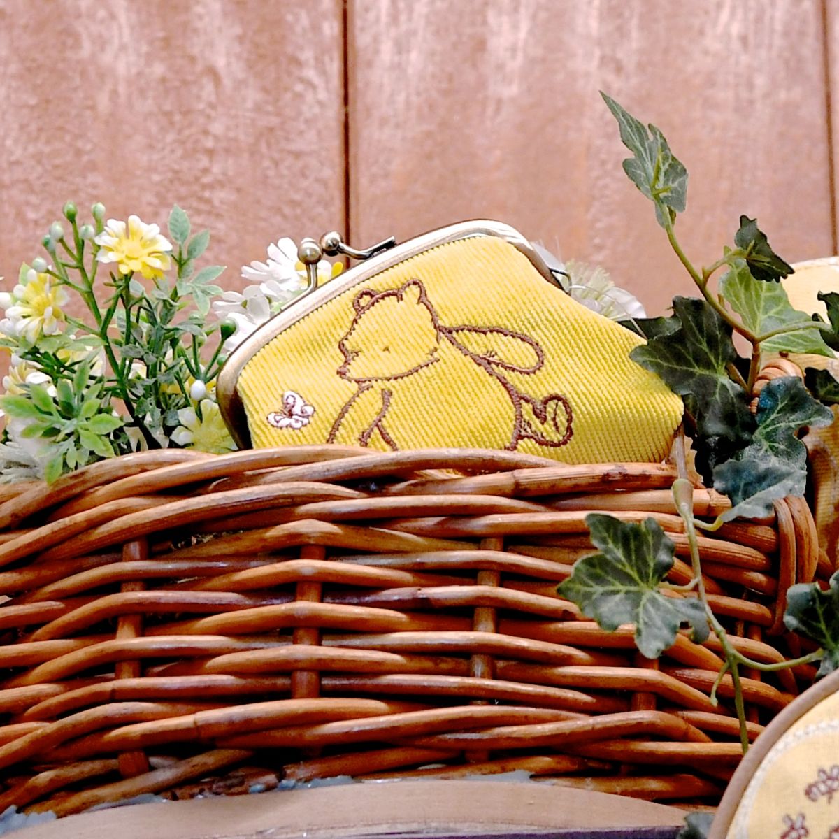 クラシックなプーさんが刺繍されたプーさんカラーの鮮やかなコインケース。
