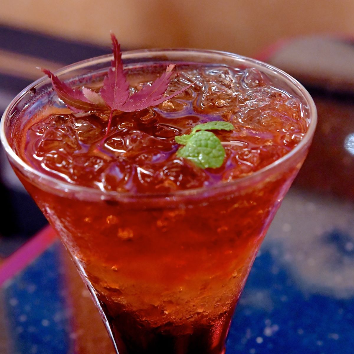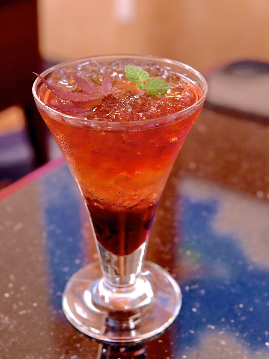 ディズニー映画『アナと雪の女王2』のワンシーンに出てくる“もみじ”があしらわれた鮮やかなスペシャルドリンク。