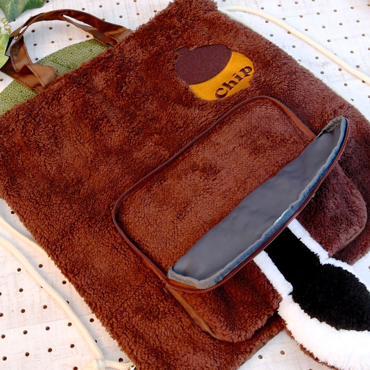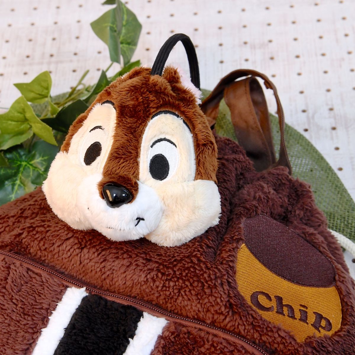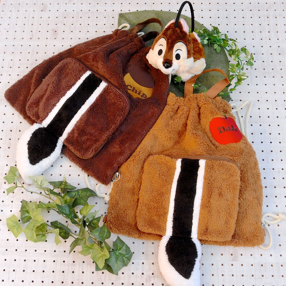 ふわもこ素材がかわいい「チップ&デール」のナップサックとイヤーマフラー。