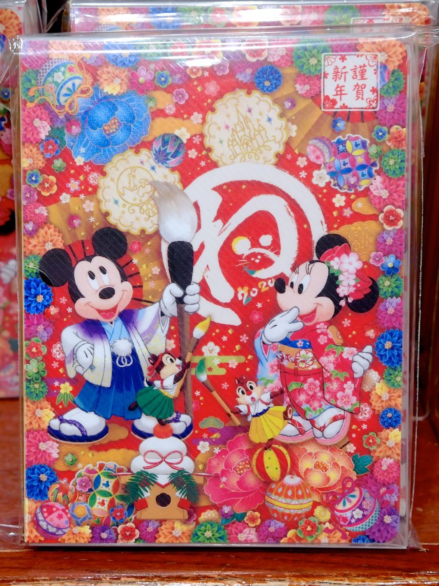 セット内容:限定オリジナルタオル、私製年賀状1枚(ミッキーまたはミニーのデザイン)