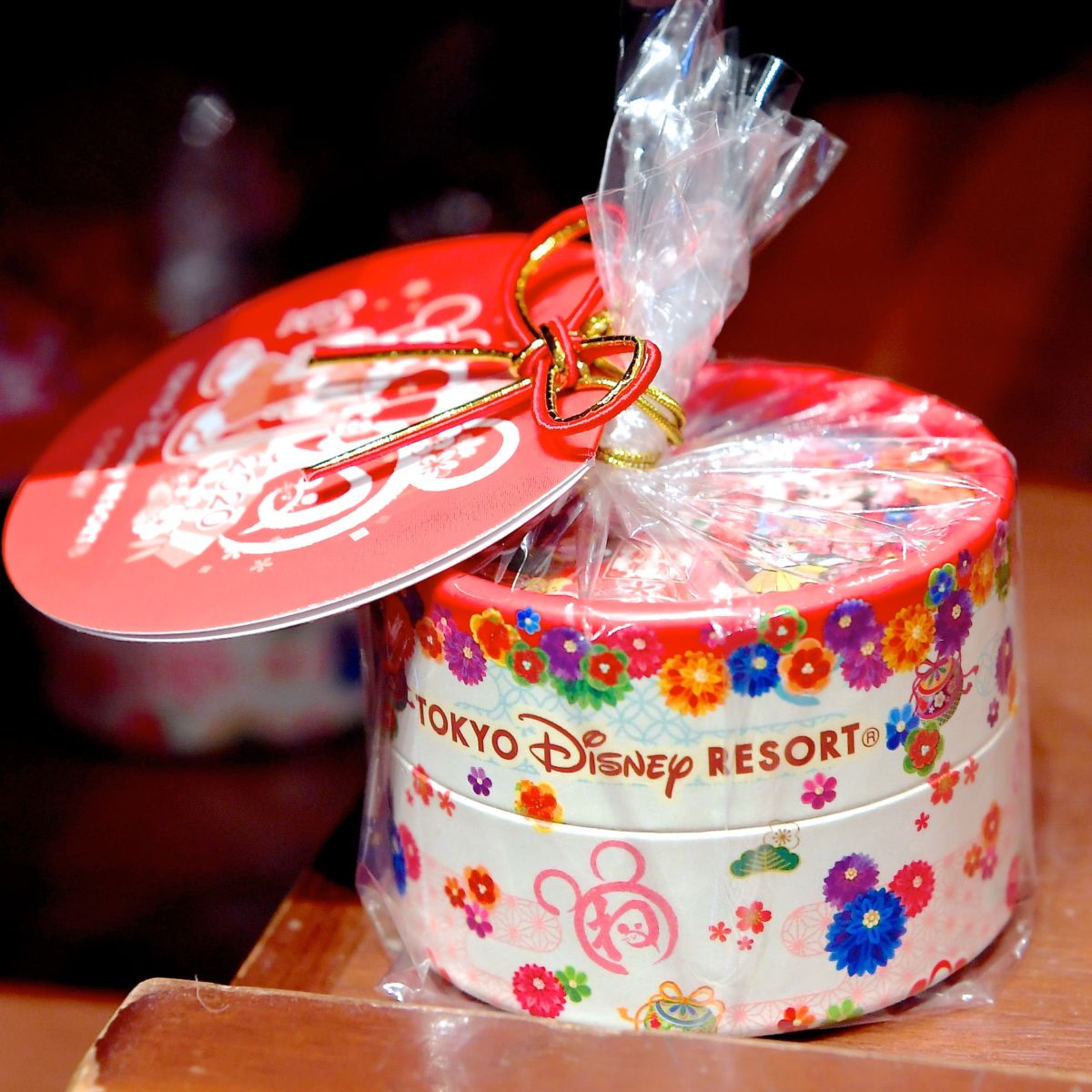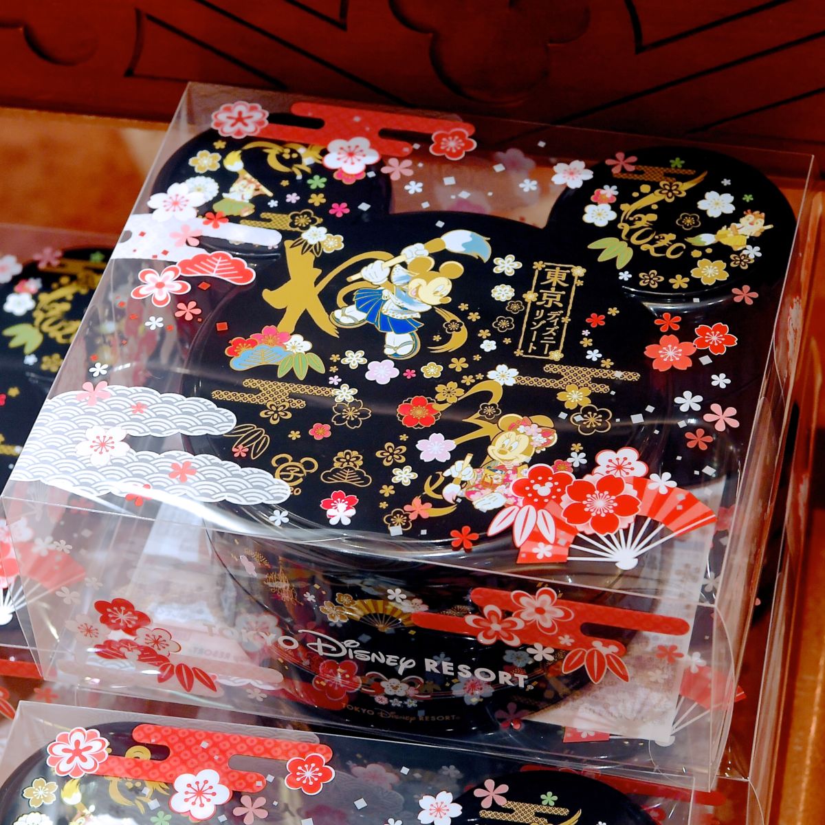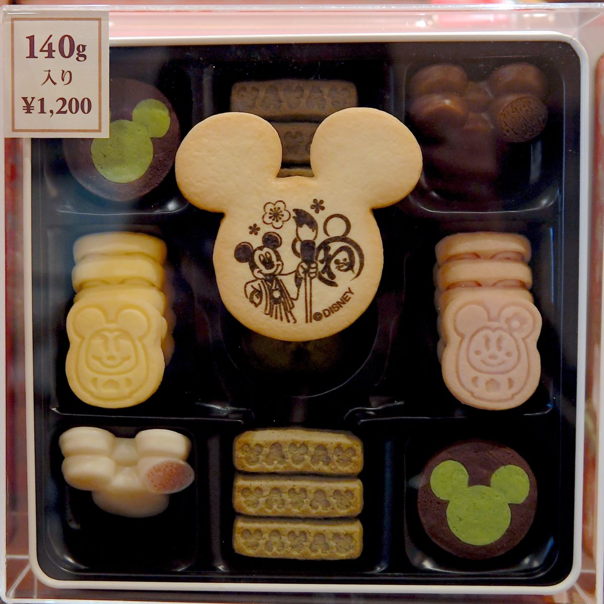 定番ミッキーシェイプのお重に入ったお菓子の詰め合わせ。