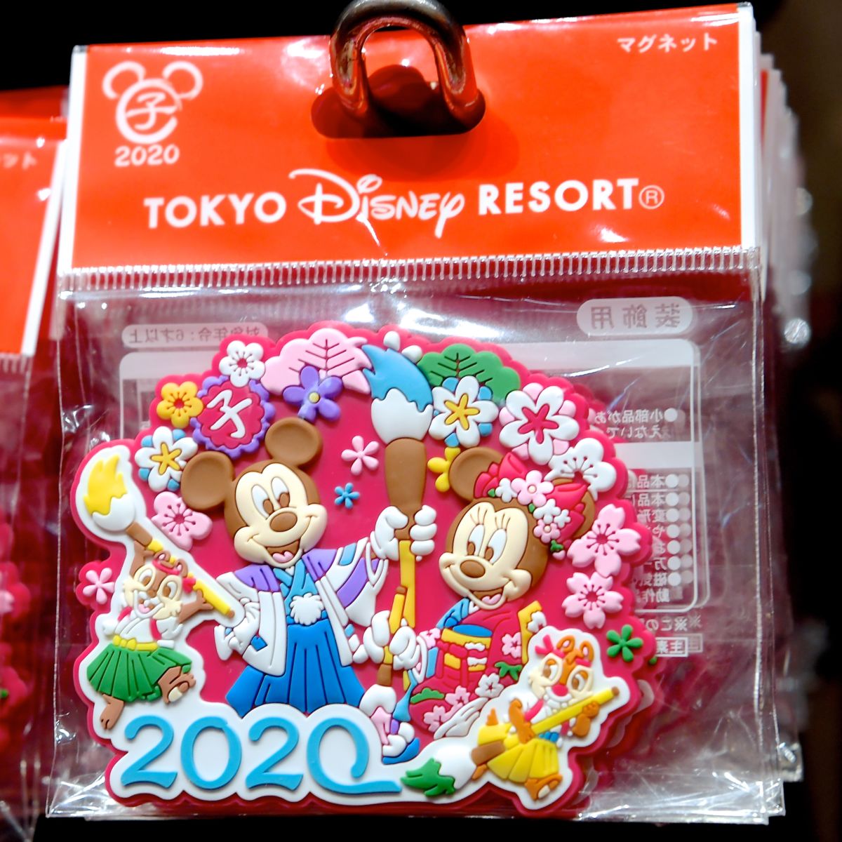2020の文字を描くデールやチップ、ミッキー、ミニーがデザインされたマグネット。