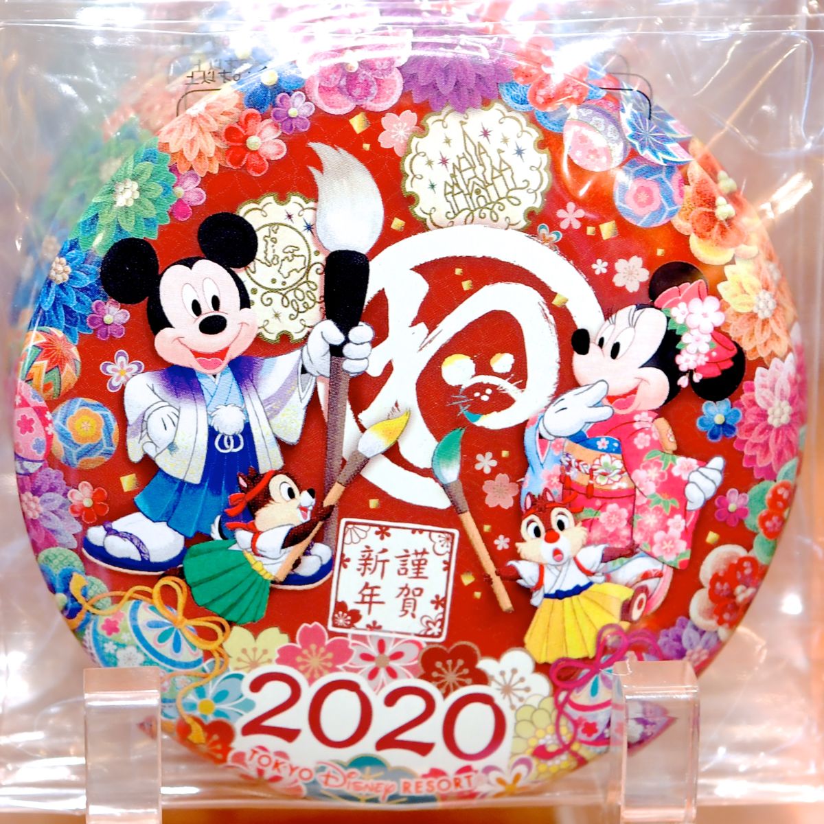おめでたい絵を描くミッキー、ミニー、チップ、デールたちのお盆。