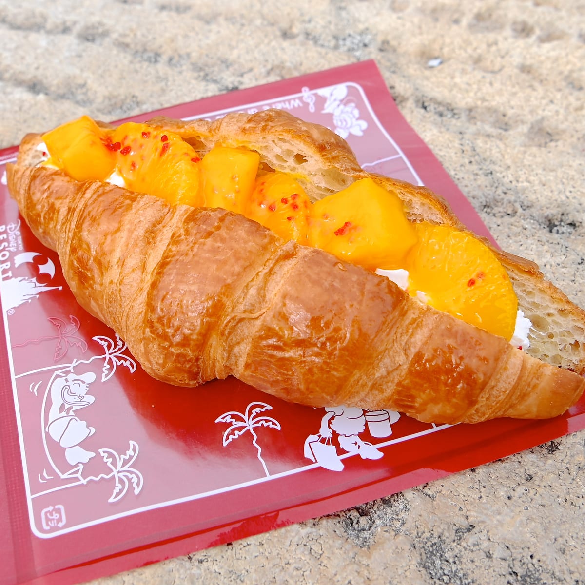 トロピカルなマンゴー、オレンジ、ホイップクリームがサンドされています☆