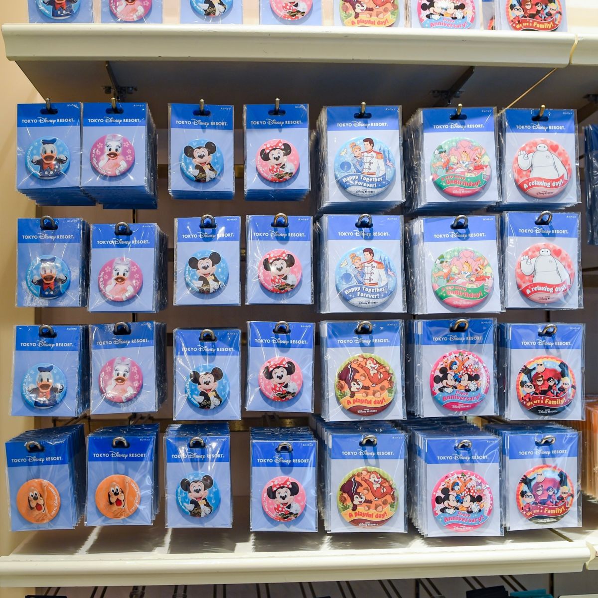 東京ディズニーランド、東京ディズニーシーではミッキー&フレンズをはじめとしたカンバッジを種類豊富に販売中。