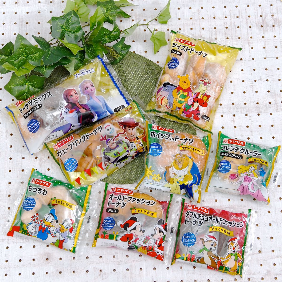 「ミッキー&フレンズ」のクリスマスならではのイラストや、話題のディズニー作品がデザインされた山崎製パン(ヤマザキ)のドーナツステーション。