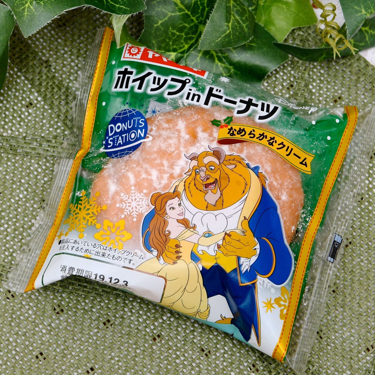 フレンチクルーラー ホイップ in ドーナツはディズニー・アニメーション映画『美女と野獣』のベルと野獣デザイン。