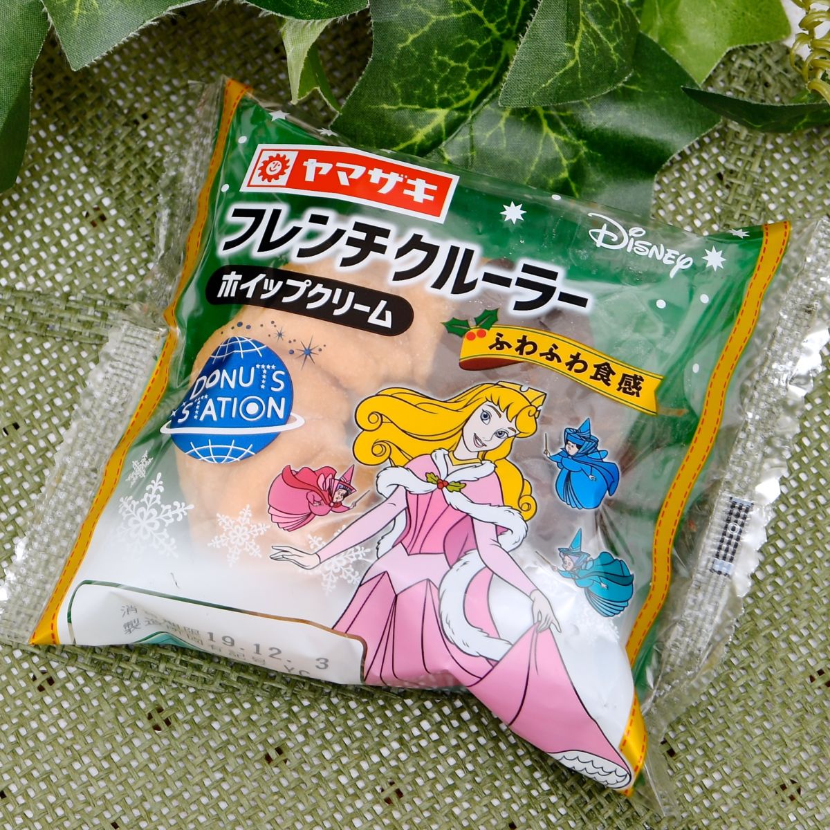 フレンチクルーラー(ホイップクリーム)はディズニー映画『眠れる森の美女』のディズニープリンセス「オーロラ姫」と「フローラ」、「メリーウェザー」、「フォーナ」
