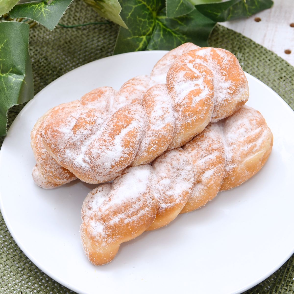 ツイストドーナツは粉糖仕上げの口どけのよいふんわりとしたドーナツ3個入りです。