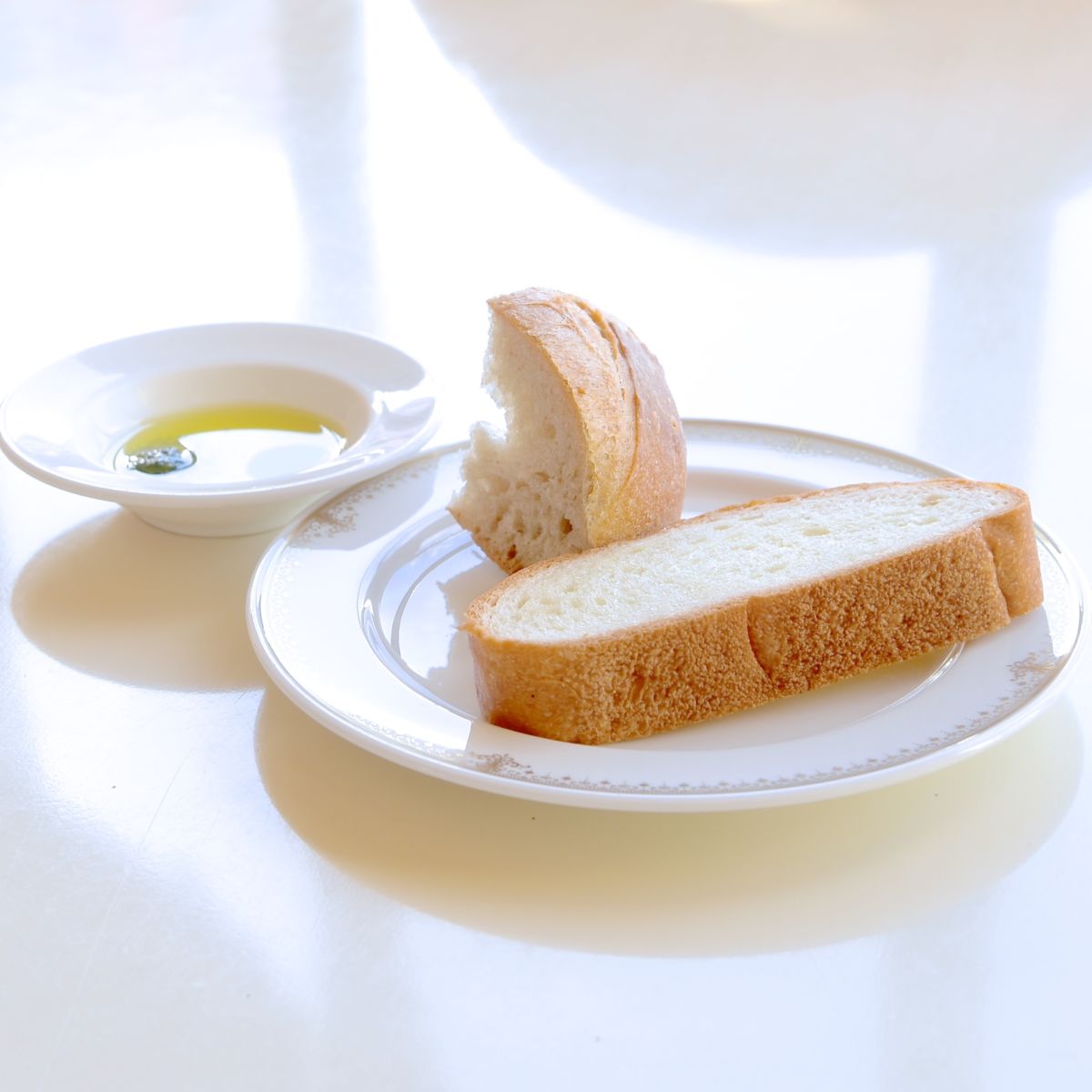 お食事に合うオニオン風味のフォカッチャと全粒粉のパン。