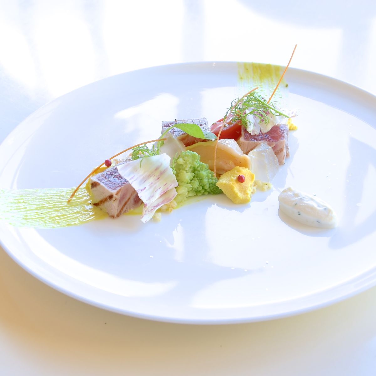 鮪のセミクルードとツブ貝のマリネ リコッタのクレマを添えて アップ