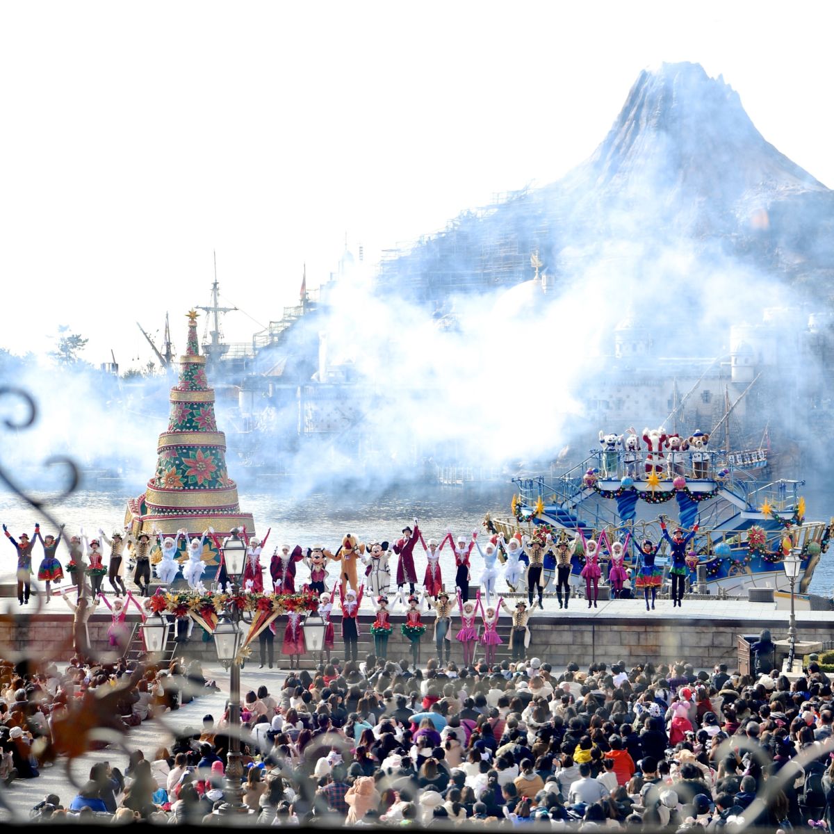 ”ディズニー・クリスマス2019”の昼のメインハーバーショー「イッツ・クリスマスタイム!」を鑑賞しながらお食事を楽しむことができます。