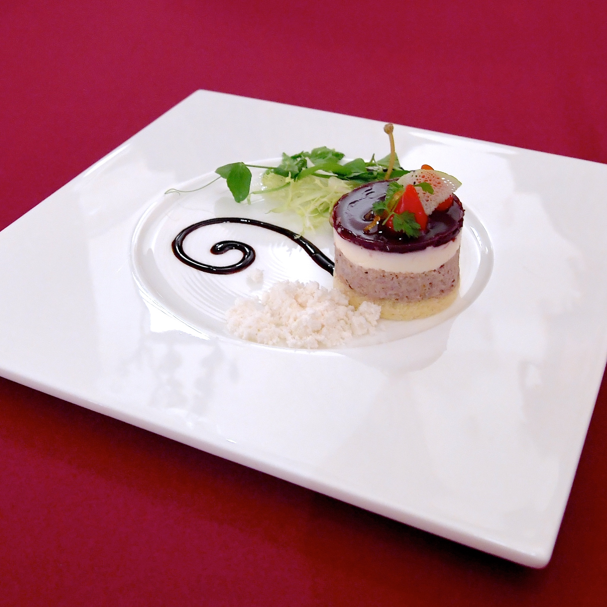クリスマスケーキをイメージしたお肉3種が層になった味わい深いガトー仕立て☆