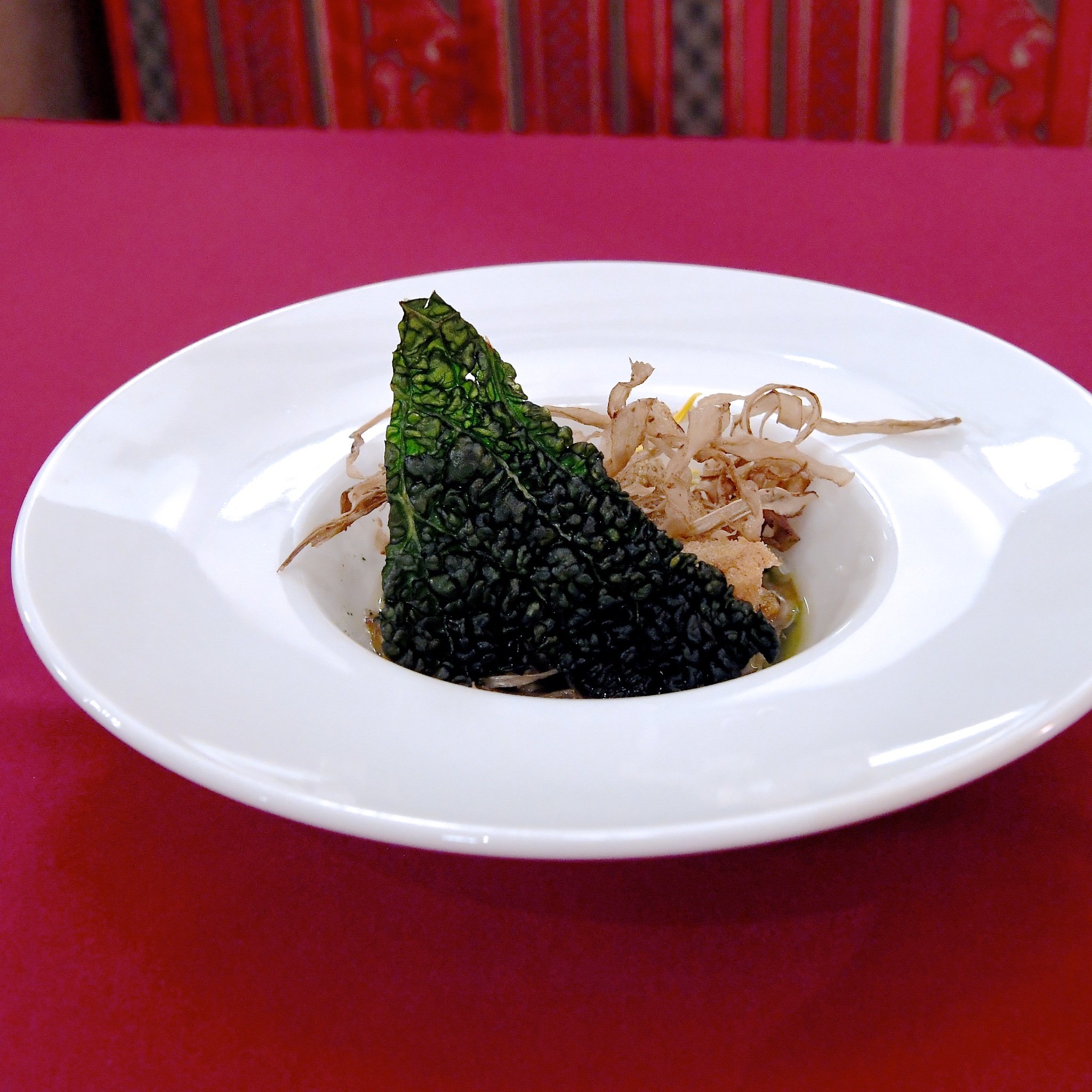 サクッと&ふんわり美味しい真鱈のフリット、クリスマスツリーをイメージしたちりめんキャベツのフリット、ゴボウのフリットが楽しめるメニュー。