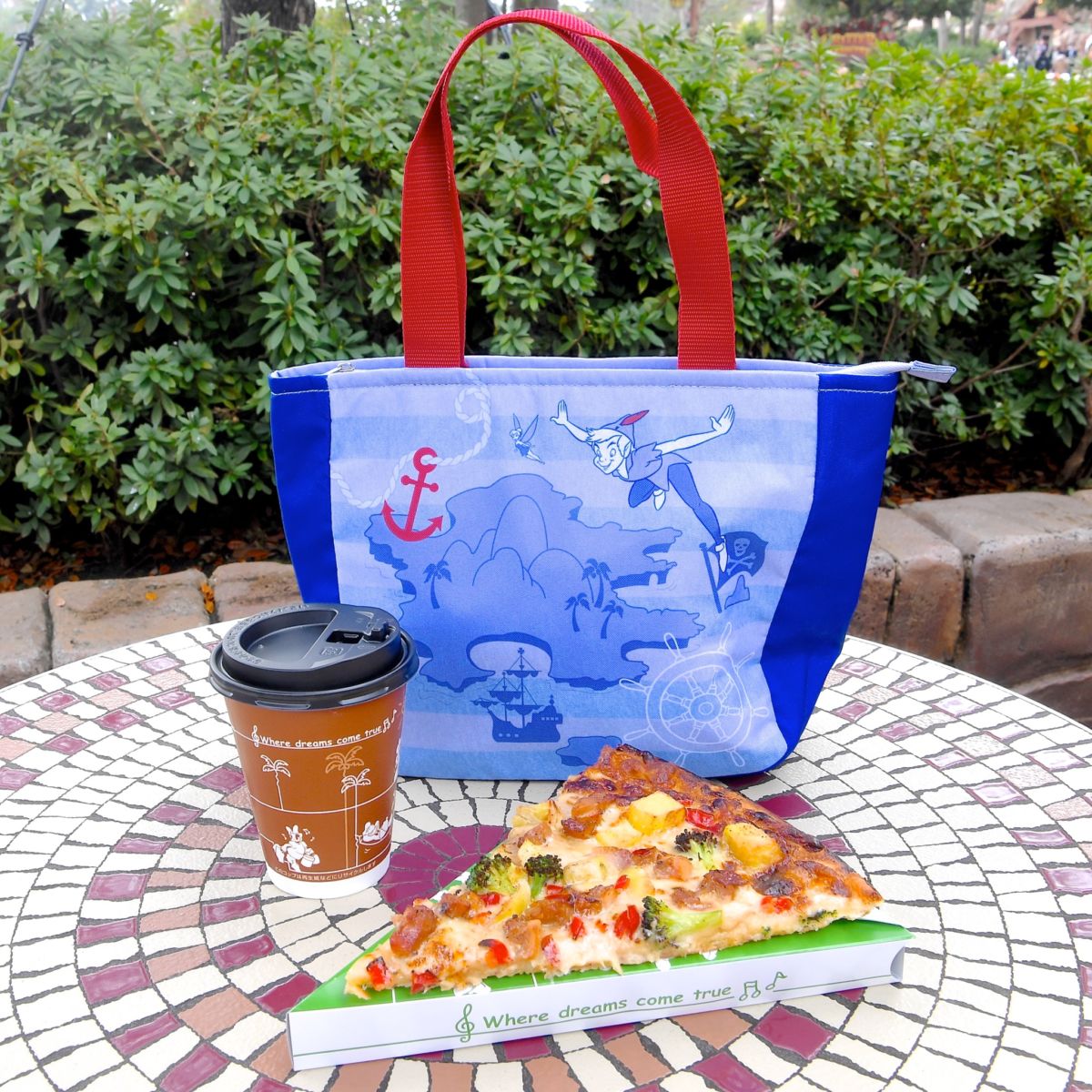 ピーターパンとフック船長デザインのスーベニアランチケースがつけられるキャプテンフックス・ギャレーのおすすめピザセット。