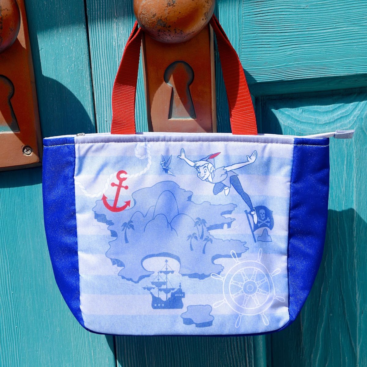 ピーター・パン、ティンカー・ベル、地図、舵などがデザインされたランチケース。