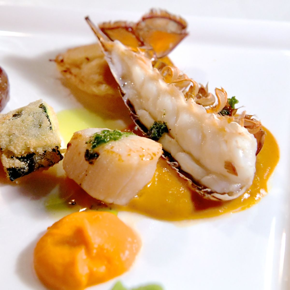 オマール海老やホタテは、コクのあるアメリケーヌソースでいただきます。