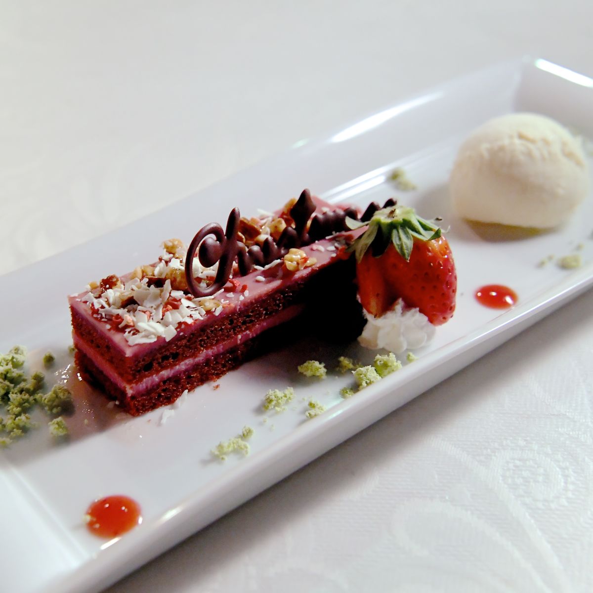 ルビーチョコレートケーキ、バニラアイスクリーム添え