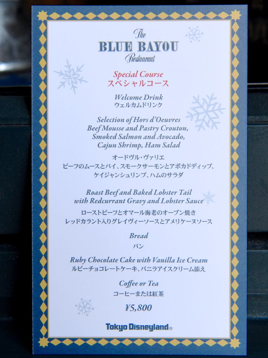 ブルーバイユー・レストラン ディズニー・クリスマス2019メニューカード