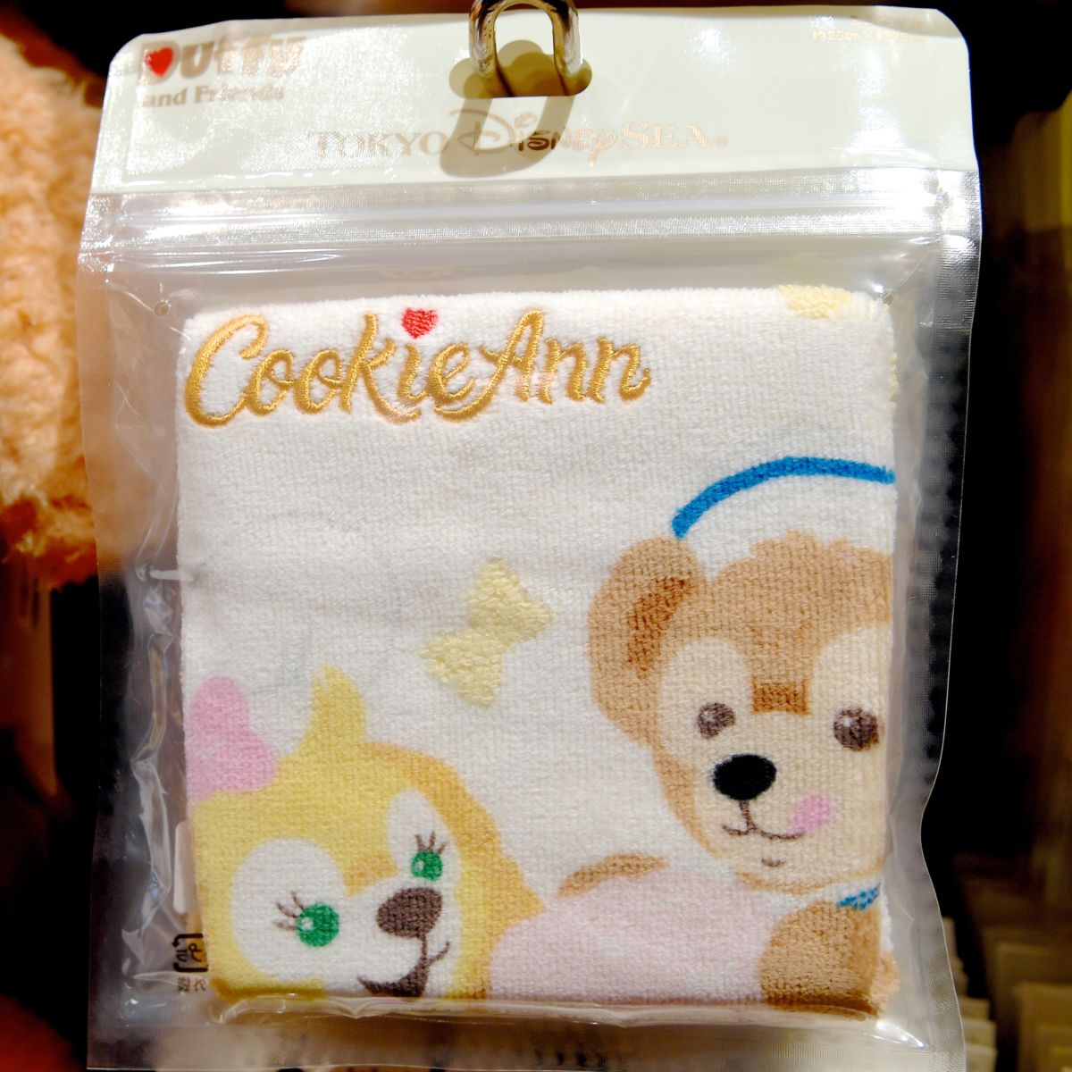 「ダッフィー」と「クッキー・アン」が出会ったシーンがデザインされたミニタオル。