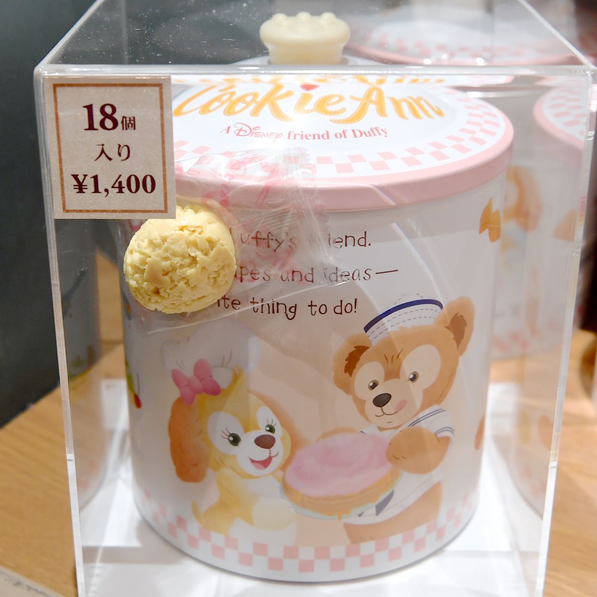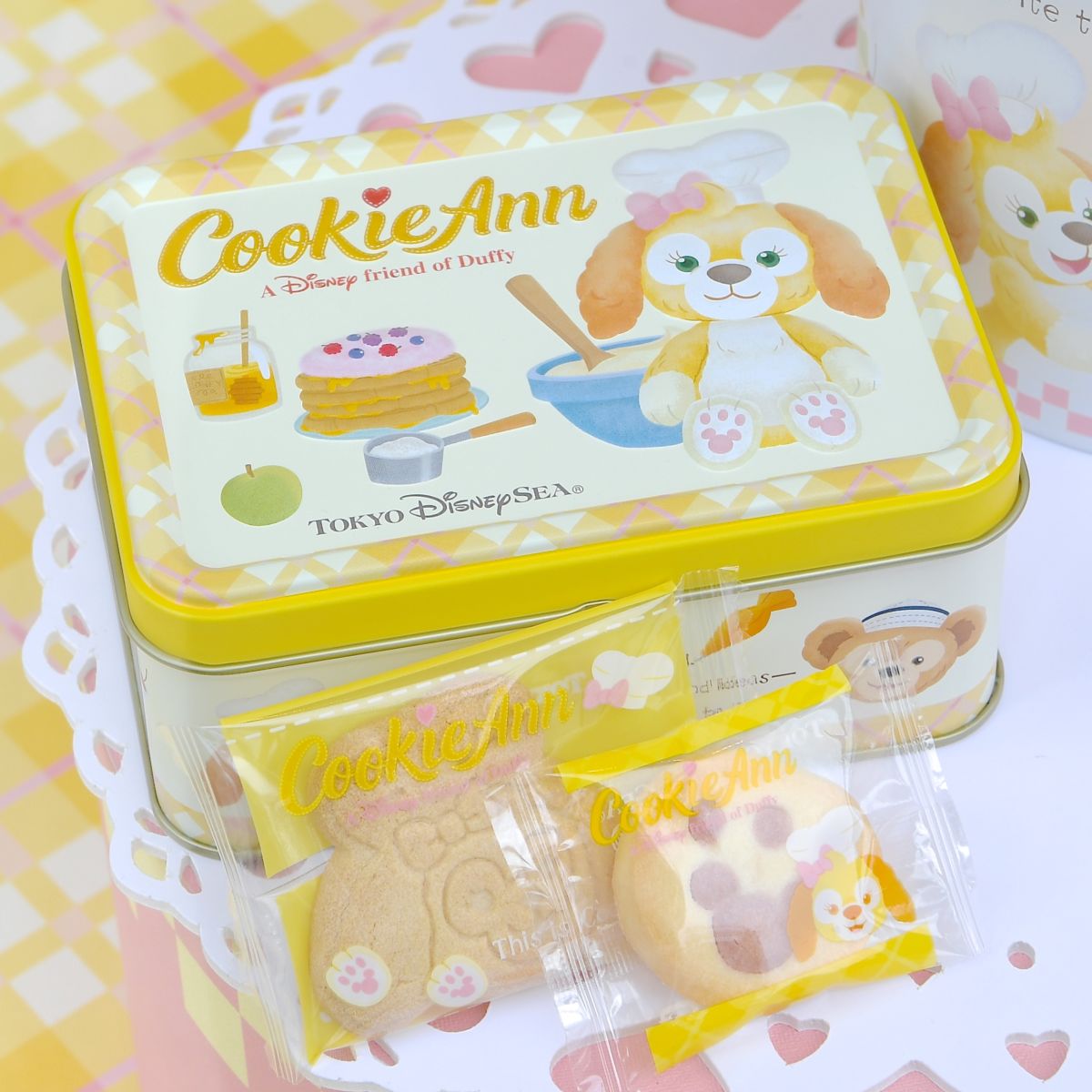 「ダッフィー」と「クッキー・アン」の出会いが描かれた缶に入っています。