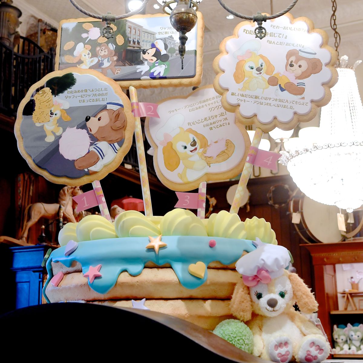 わたあめを食べようとしたダッフィーにワッフルの山がせまってきました!