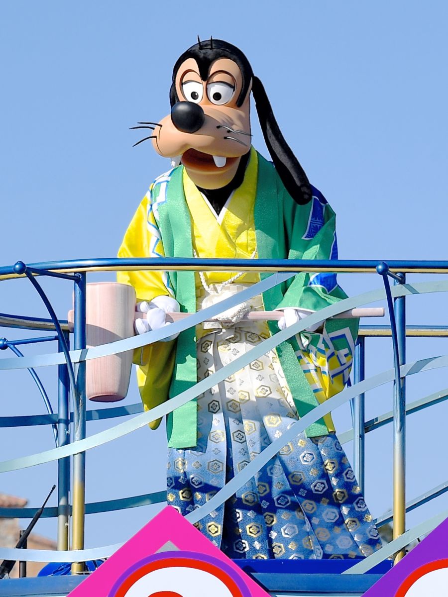 袴が似合うグーフィーは、お餅をつく杵を持って登場☆
