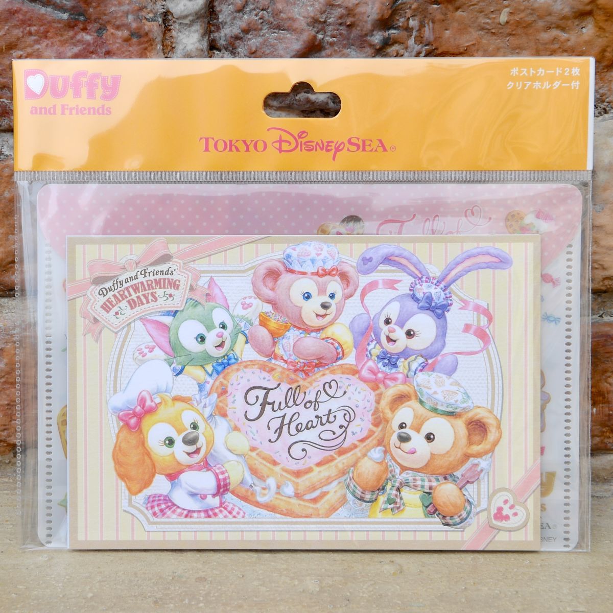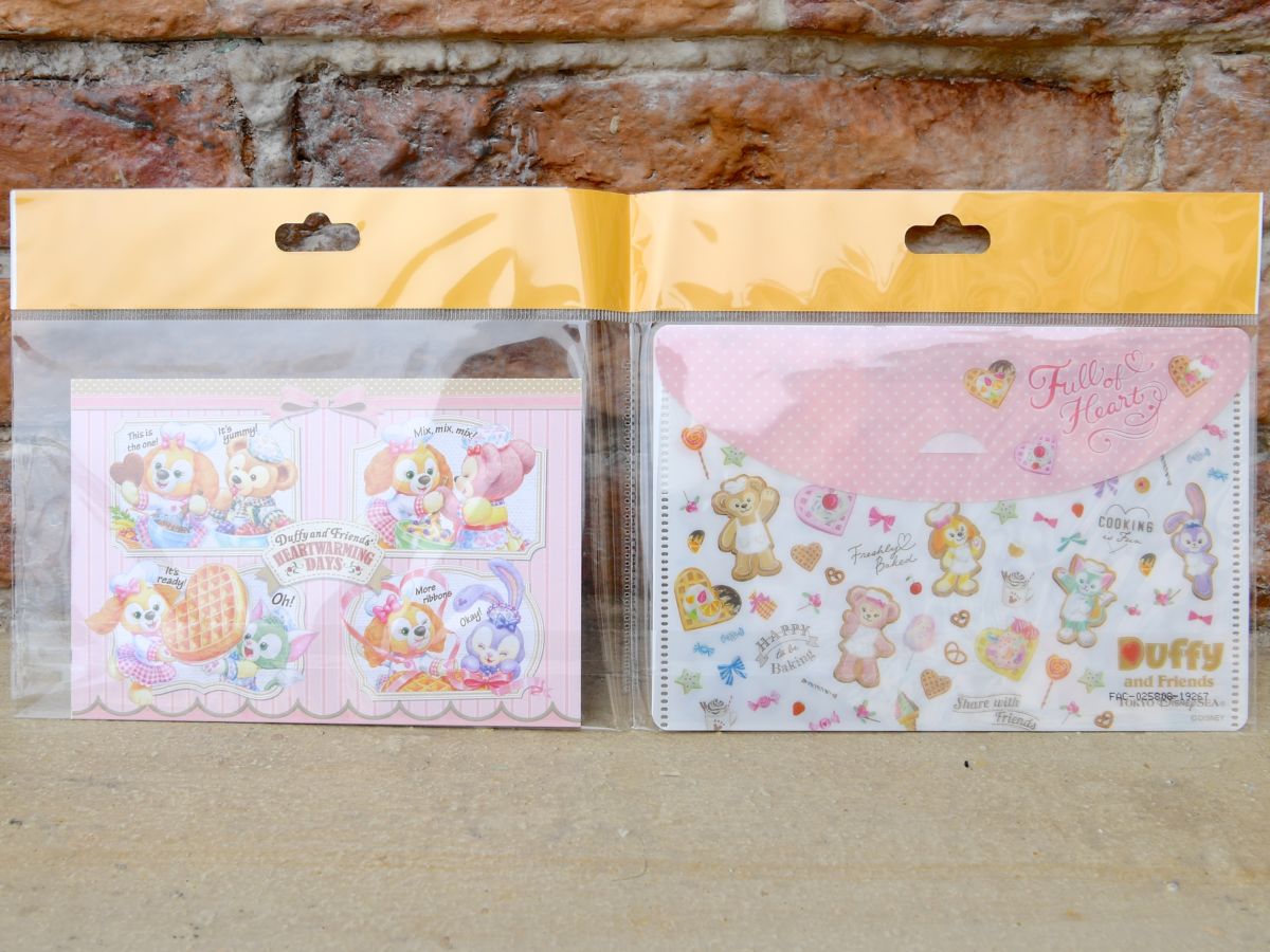 ダッフィー&フレンズの総柄クリアホルダー付きポストカード2枚セット。